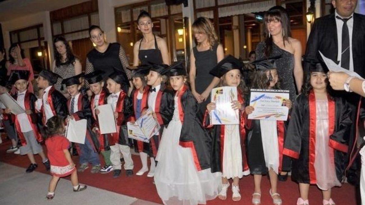 Okul öncesi eğitimlerini Fatoş Anaokulu’ nda tamamlayan minikler, bu mutluluğu düzenlenen mezuniyet yemeğinde aileleri ile paylaştılar. Bizim Ev Sosyal Tesislerinde gerçekleşen mezuniyet yemeğinde kep ve cüppelerini giyen öğrenciler, sinevizyona yansıyan fotoğrafları eşliğinde kırmızı halı da yürüdüler.