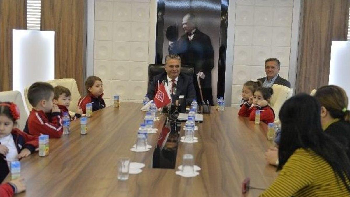 Muratpaşa Belediye Başkanı Ümit Uysal, değerler eğitim kapsamında kendilerine küçük gelen kıyafetleri, kullanmadıkları oyuncakları belediyenin Sosyal Yardım Merkezi’ne bağışlayan Sınav Koleji’nin anaokulu öğrencilerini “Kahramansınız” diyerek kutladı.Sınav Koleji’nin anaokulu öğrencileri ‘Değerler Eğitimi’ kapsamında işledikleri işbirliği ve yardımlaşma konusu için 1 ay boyunca evde artık kendilerine küçük gelen kıyafetleri, kullanmadıkları oyuncaları sınıflarında oluşturulan yardım kolilerinde biriktirdi. Minik öğrenciler, biriktirdikleri oyuncak ve kıyafetleri Muratpaşa Belediyesi Sosyal Yardım Merkezi’ne bağışladı. Bağışın ardından öğretmenleriyle birlikte Belediye Başkanı Ümit Uysal’ı ziyaret eden minikler hayata geçirdikleri projelerini bir kez de ‘Başkan Amcaları’na anlattı, küçülen kıyafetleri yardım için birilerine vereceklerini söyledi.Gösterdikleri örnek davranış dolayısıyla Başkan Uysal, anaokulu öğrencilere “Kahramansınız. Hepinizi kutluyorum. Ne iyi etmişsiniz” sözleriyle teşekkür etti. Sınav Koleji’nin anaokulu öğrencileri Muratpaşa Belediyespor bünyesinde yer alan jimnastik takımı için Başkan Uysal’a ayrıca teşekkür ederken minik öğrencilerin ziyaretinde en büyük övgüyü ise Teneffüs Park aldı.