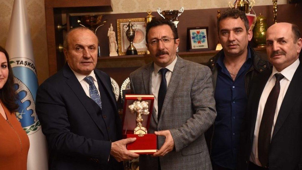 Taşköprü Sosyal Yardımlaşma ve Dayanışma Derneği Başkanı Şenol Özsoy, yönetim kurulu üyeleriyle birlikte Taşköprü ilçesini ziyaret etti.Geçtiğimiz aylarda Ankara’da kurulan Taşköprü Sosyal Yardımlaşma ve Dayanışma Derneği Başkanı Şenol Özsoy ve Yönetim Kurulu Üyeleri, Taşköprü Kaymakamı Kerem Süleyman Yüksel ve Taşköprü Belediye Başkanı Hüseyin Arslan’ı makamında ziyaret ettiler. İlçenin tarihi yerlerini de gezen Taşköprü Sosyal Yardımlaşma ve Dayanışma Derneği yönetimi, Başkan Arslan’dan tarihi zenginlikleri hakkında bilgi aldılar.Kaymakam Yüksel ve Başkan Arslan’da, Taşköprü Sosyal Yardımlaşma ve Dayanışma Derneği Başkanı Şenol Özsoy ve yönetimini tebrik ederek çalışmalarında başlarılar diledi.
