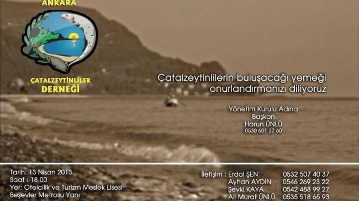 Dernek Başkanı Harun Ünlü “Büyük kentlerdeki hemşehrilerin sık sık buluşmaları kolay olmuyor. Yemek organizasyonları bu anlamda önem taşıyor. Çatalzeytinlilerle 13 Nisan 2013’te Ankara’da bir yemekte beraber olmayı planladık. Bu yemekte katılımın büyük olmasını umuyor ve bekliyoruz. Çatalzeytin türküleri fon müziği eşliğinde gecede slayt gösterisi yapacağız. Geceden sonra dernek olarak Çatalzeytin’de göçün durdurulması amacıyla alınacak ekonomik önlemlerle ilgili olarak Ankara’da bir panel düzenleyeceğiz” dedi.