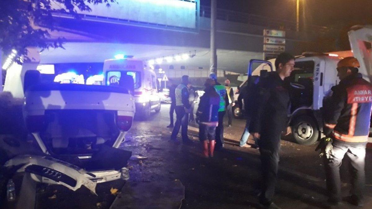Ankara’da viraja 100 kilometre hızla giren otomobil, sürücüsünün direksiyon hakimiyetini kaybetmesi sonucu refüje çarparak takla attı. Kazada 1’i kadın 3 kişi yaralandı.Kaza, saat 05.00 sıralarında Altındağ’da meydana geldi. Edinilen bilgilere göre; Atatürk Bulvarı üzerinde Sıhhıye’den Ulus istikametinde seyreden 06 ZAV 83 plakalı otomobil, Türk Hava Kurumu Genel Müdürlüğü önünde sürücüsü Kerim A.’nın direksiyon hakimiyetini kaybetmesi sonucu refüje çarptı. Yaklaşık 10 metre sürüklenen otomobil, takla atarak durabildi. Kazanın etkisiyle araçta bulunan yolculardan 1’i kadın 3 kişi yaralandı. Hurda yığınına dönen otomobilin hız ibresinin 100 kilometrede kaldığı görüldü.Kazanın gürültüsüyle sarsılan bulvar üzerinde uygulama görevindeki polis ekipleri, hemen aracın yanına koşarak yaralılara yardım etti. Kısa süre sonra bölgeye 112 Acil Servis ekipleri ile itfaiye ekipleri geldi. Kendi imkanlarıyla aracın içinden çıkan şahıslara ilk müdahalede bulunan sağlık ekipleri, daha sonra yaralıları tedavi edilmek üzere ambulanslarla hastaneye kaldırdı. İtfaiye erleri, yakıt ve yağ sızdıran otomobilin akümülatörünün kutup başlarını söktü. Kazanın etkisiyle Atatürk Bulvarı bir süreliğine tek taraflı olarak araç trafiğine kapandı. Hurda yığınına dönen otomobil, çekici yardımıyla otoparka kaldırıldı.Polis ekipleri, kaza hakkında inceleme başlattı.