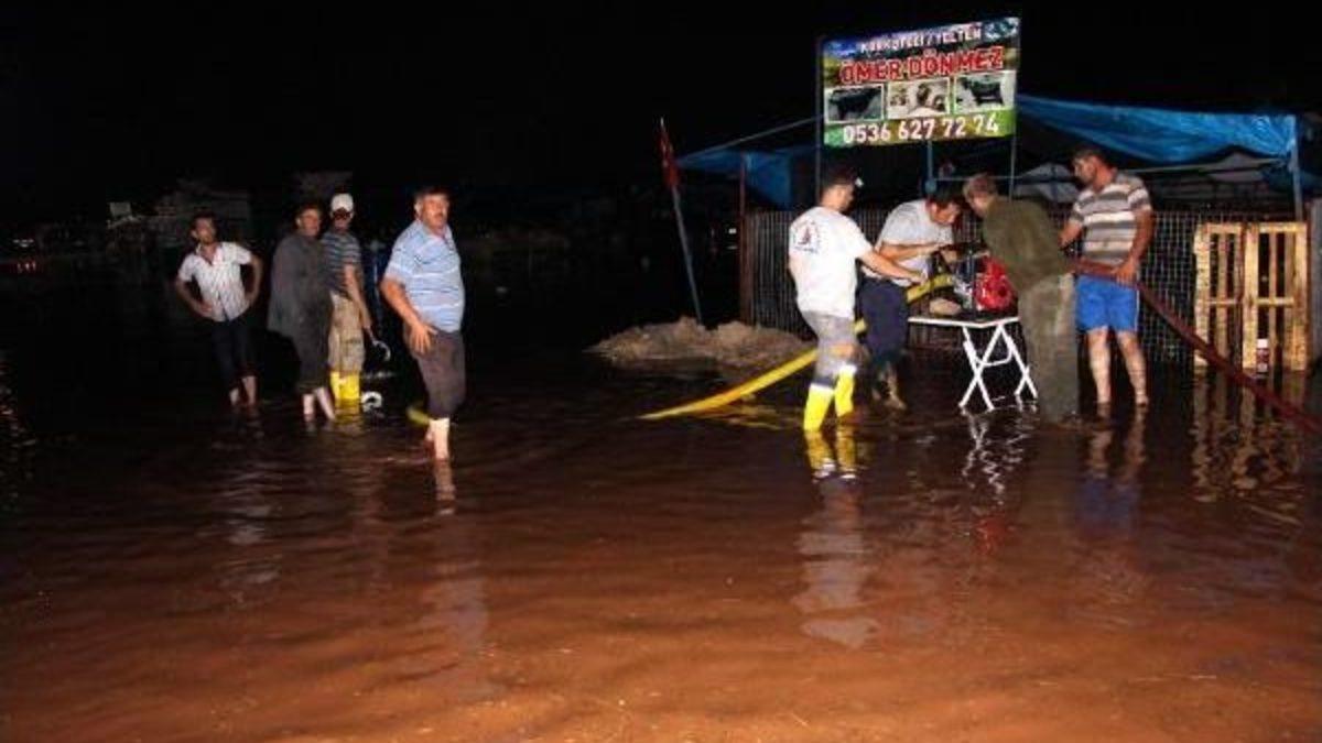 Yusuf ÜNAL / ANTALYA, Antalya'da dün saat 20.00 sıralarında başlayan ve sabah saatlerine kadar aralıklı devam eden yağmur, yaşamı olumsuz etkiledi. Mazgalların tıkanması nedeniyle sokaklar göle dönerken, bazı binaların giriş ve bodrum katlarını su bastı. Etkili sağanaktan kurbanlık satışı yapılan hayvan pazarları da etkilendi. Pazar içerisindeki hayvanlar ve satıcıların çadırları sular altında kaldı. Suyu tahliye etmek için bölgeye çok sayıda itfaiye ve belediye görevlisi sevk edildi. İtfaiye ekipleri alanın bir çok yerine sondajlar kurarak suyu tahliye etmeye çalışırken, belediyeye ait vidanjörler de biriken suyu çekmeye çalıştı.