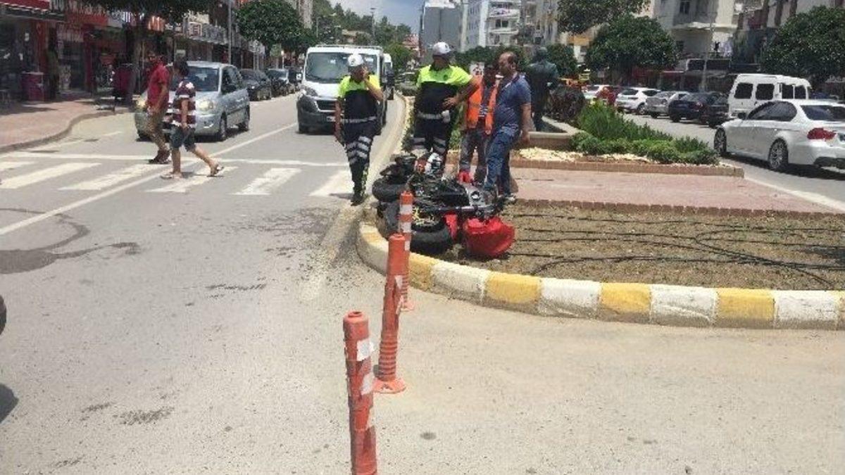 ANTALYA (İHA) – Antalya’nın Manavgat ilçesinde meydana gelen kazada motosiklet sürücü yaralandı.Edinilen bilgiye göre, Demokrasi Bulvarı’ndan çevreyolu istikametine gitmekte olan Cüneyt Nakış’ın kullandığı 35 HA 2915 plakalı motosiklet, 5017 sokağın bulvarla kesiştiği kavşakta yaya çarpmamak için sürücüsünün direksiyon hakimiyetini kaybetmesi sonucu yola savruldu. Kazada, yaralanan motosiklet sürücüsü, olay yerine çağrılan ambulansla Manavgat Devlet Hastanesi’ne kaldırıldı.