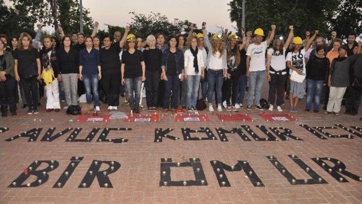 Manisa’nın Soma ilçesinde meydana gelen maden faciasını protesto eden CHP Antalya İl Kadın Kolları üyeleri, Cumhuriyet Meydanı'nda mumlarla 'Bir avuç kömür için bir ömür verenler' yazarak oturma eylemi yaptı.Manisa'nın Soma ilçesinde meydana gelen maden faciasını protesto eden CHP Antalya Kadın Kolları üyeleri, Cumhuriyet Meydanı'nda bir araya geldi. Meydana mumlarla 'Bir avuç kömür için ömür verenler' yazan kadınlar, 3 dakikalık saygı duruşunda bulundu. Kadınlar daha sonra oturma eylemi yaptı. CHP Antalya Kadın Kolları Başkanı Sultan Yeğen, Türkiye'nin en büyük maden facialarından biriyle karşı karşıya olunduğunu ifade etti. Ocakta yangın devam ederken maden önünde umutla bekleyenler gibi kendilerinin de her yerde tek ses olup, yüreklere düşen acının büyümemesini dilediklerini belirten Yeğen, "Şehit işçilerimize rahmet, ailelerine, yakınlarına, işçi arkadaşlarına, Soma'ya, Türkiye'ye başsağlığı ve sabır diliyoruz" dedi.LİSELİ ÖĞRENCİLERİ SİYAH ELBİSELERLE YÜRÜDÜTürkiye Liseler Birliği (TLB) üyesi öğrenciler de Kazım Özalp Caddesi'nde toplandı. Siyah elbise giyen, madenci bareti takan öğrenciler, 'Canımızı yakan TOMA değil Soma' yazılı pankart taşıdı. Cumhuriyet Meydanı'na yürüyen öğrenciler, saygı duruşunda bulunduktan sonra oturma eylemi yaptı.