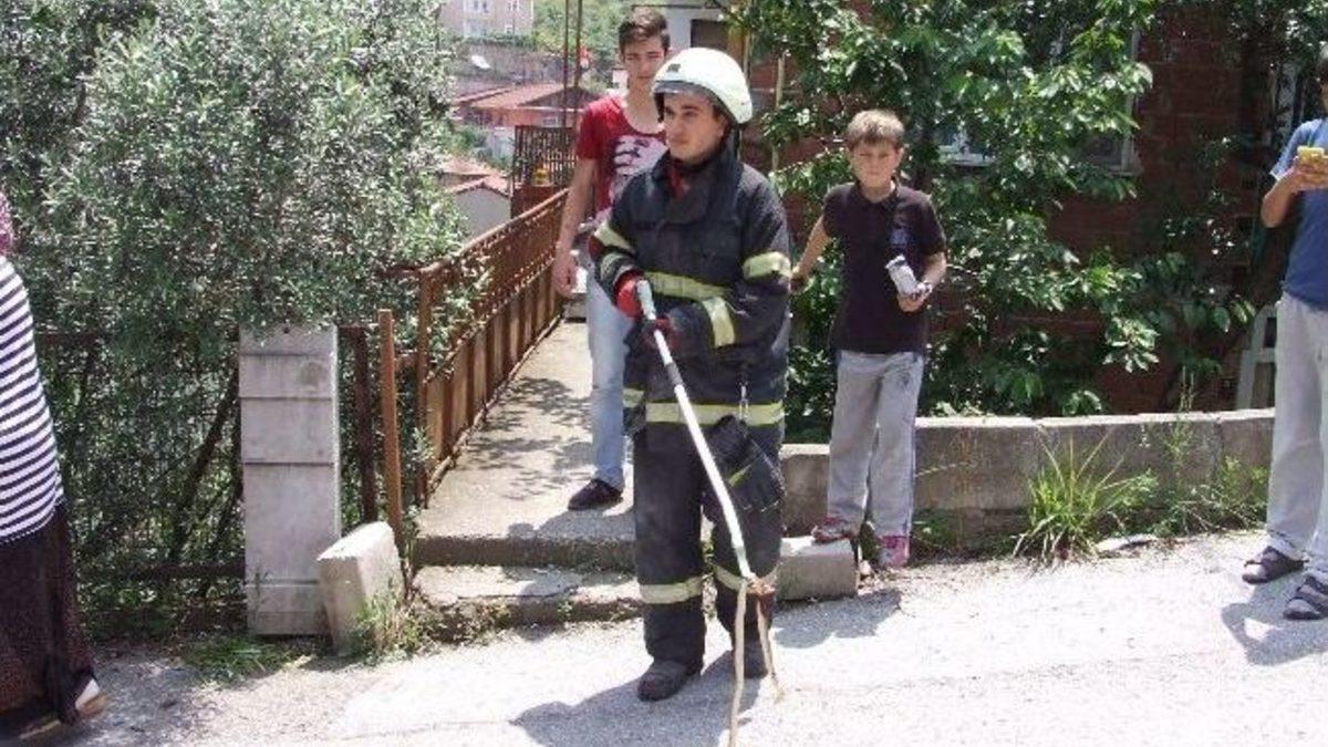 Kocaeli'nin Gölcük ilçesi Donanma Mahallesi’nde bir binaya giren yılan, itfaiye ekipleri tarafından etkisiz hale getirilerek yakalandı.Gölcük Donanma Mahallesi Mevlana Caddesinde apartman içerisinde yılan gören kız çocuğu çığlık atınca komşular yardıma koştu. Küçük kız hemen evine giderken komşularına apartmanda yılan gördüğünü söyledi. Komşuların aramasına rağmen yılan bir türlü bulunamayınca itfaiye ekiplerine haber verildi. Olay yerine gelen itfaiye ekipleri yaptıkları aramalarda bir metrelik yılanı saklandığı yerde yakaladı. Yaralı olarak ele geçirilen yılanın kent merkezine nereden geldiği henüz anlaşılamazken apartman sakinleri itfaiye ekiplerine teşekkür etti.