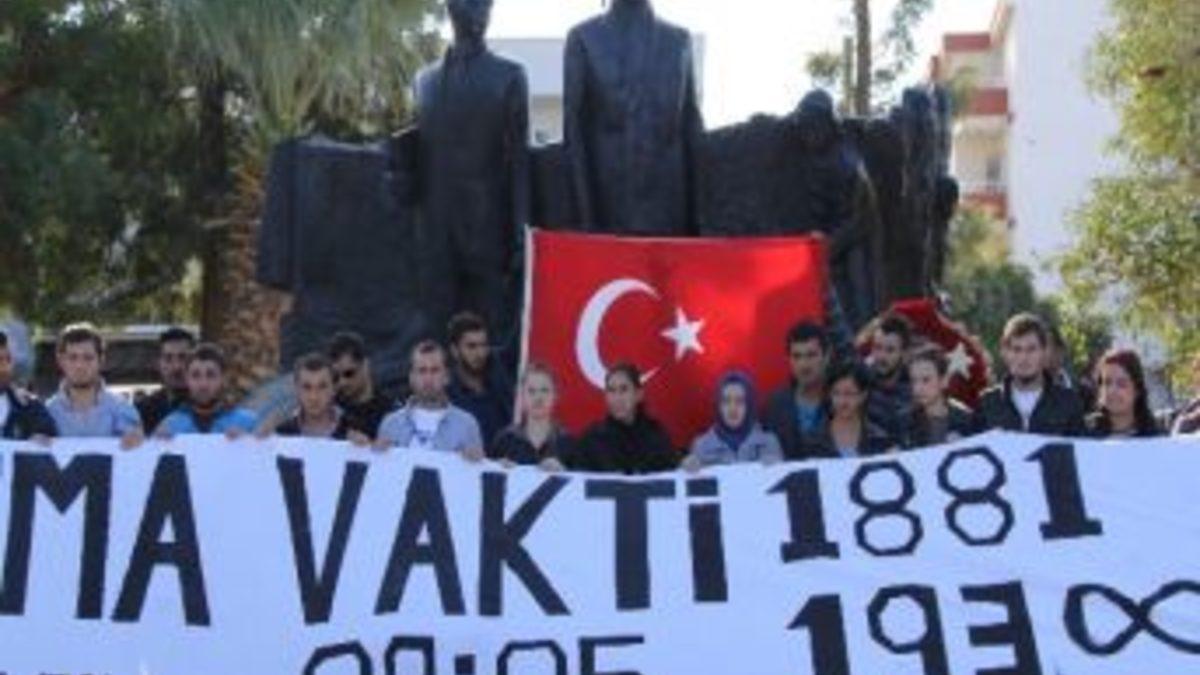 Didim Belediyespor’un taraftar grubu Apollon Taraftar grubu 10 Kasım Atatürk’ün anma etkinlikleri kapsamında Atatürk heykeli önünde pankart açtı.