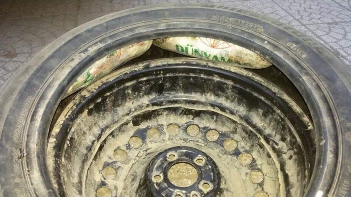 Şanlıurfa’da ticari aracın yedek lastiğinin içerisine gizlenen uyuşturucu polis tarafından ele geçirildi.Edinilen bilgiye göre, Şanlıurfa İl Emniyet Müdürlüğüne bağlı Narkotik Şube Müdürlüğü ekipleri, sabah saat 05.30 sıralarında şüphelendikleri bir ticari aracı durdurarak arama yaptı. Yapılan aramada herhangi bir uyuşturucu madde bulamayan polisler, aracın bagajındaki yedek lastiği alarak lastik tamir dükkanında açtırdı. Açılan lastiğin içerisinden toplan 6 kilo 350 gram esrar maddesi çıktı.Uyuşturucu ticareti yaptıkları iddia edilen Ali D., Ramazan Y., Mustafa İ. ve Aslan D. gözaltına alınırken olayla ilgili soruşturma başlatıldı.