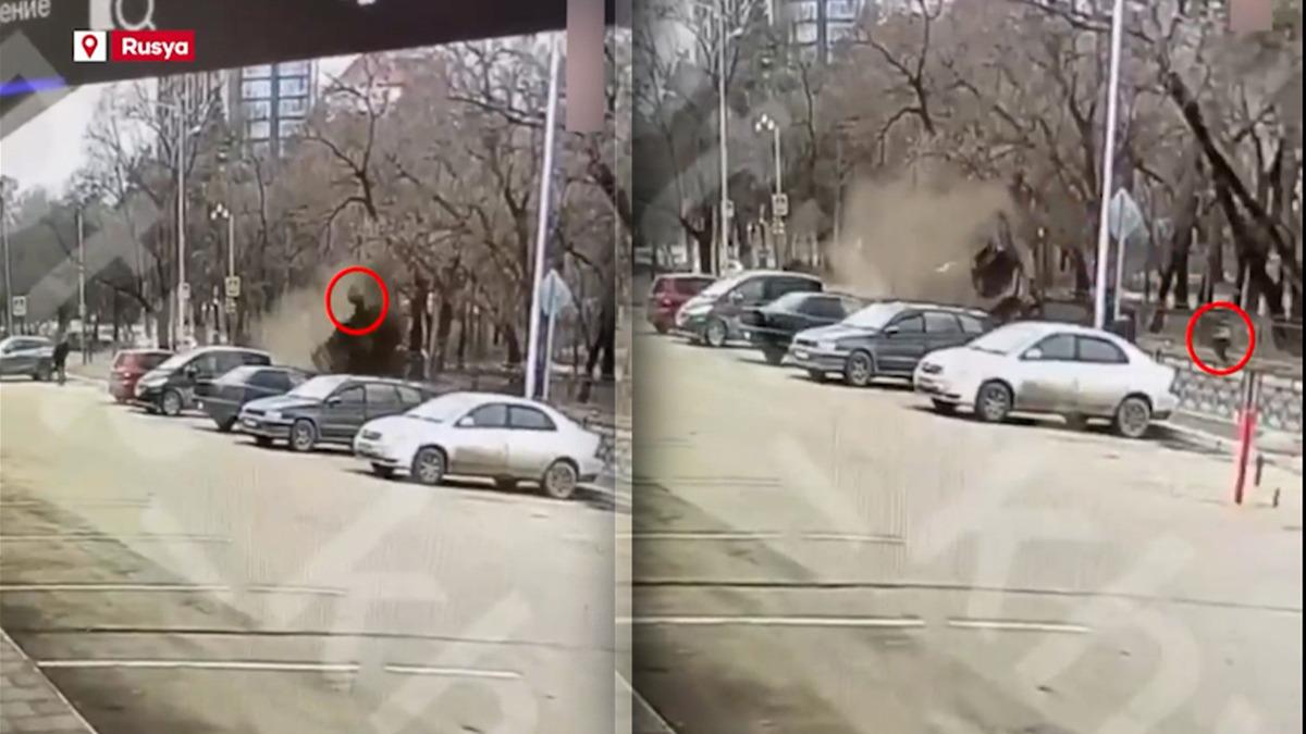 Rusya’da iki aracın karıştığı trafik kazasında bir kişi şiddetli çarpışmanın etkisiyle araçtan fırladı.