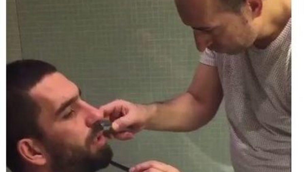 Barcelonalı yıldız oyuncu Arda Turan, tıraş olurken Göztepe tribünlerinin ünlü bestesi ’İsyan Marşı’nı söyledi. Videoyu...