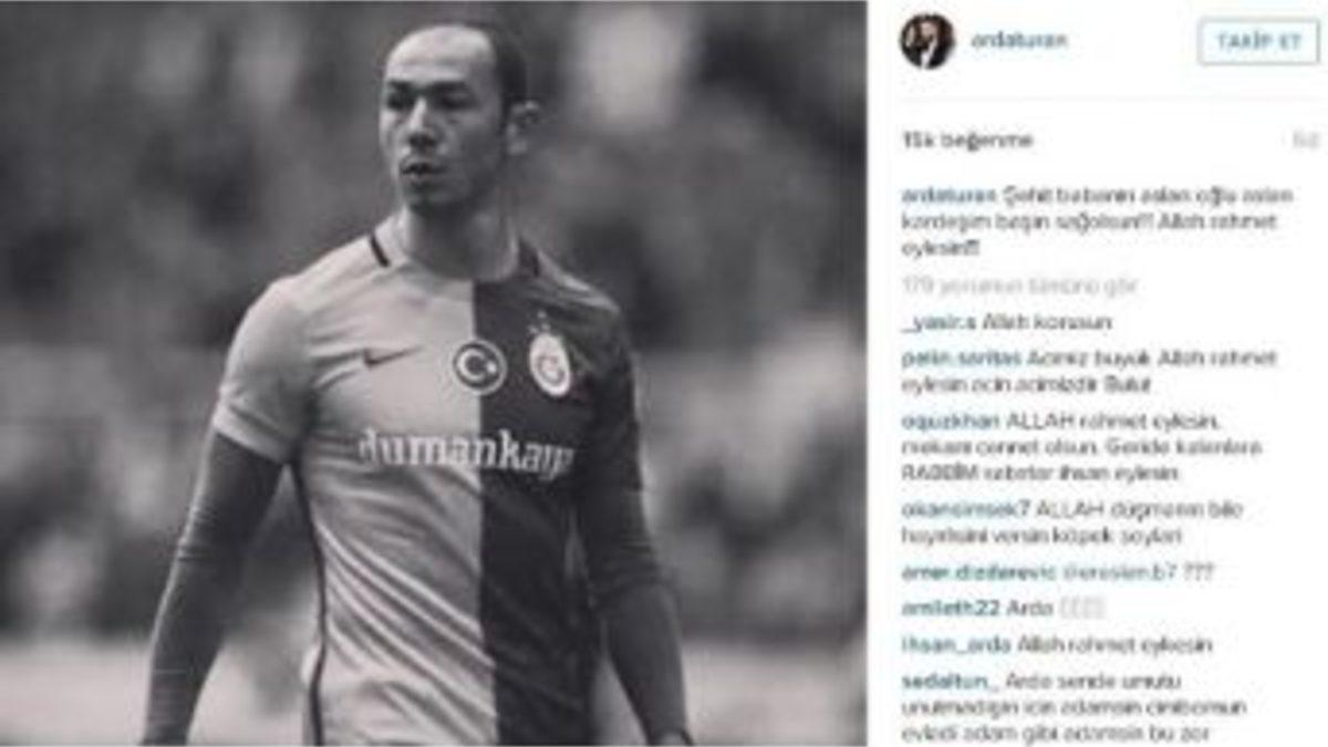 Barcelona’nın milli yıldızı Arda Turan, Ankara’daki saldırıda babasını kaybeden Umut Bulut için bir mesaj yayınladı.Katalan ekibinin milli yıldızı, sosyal medya hesabında Umut Bulut’un fotoğrafını paylaşarak, "Şehit babasının aslan oğlu aslan kardeşim başın sağolsun!!! Allah rahmet eylesin!!!" dedi.