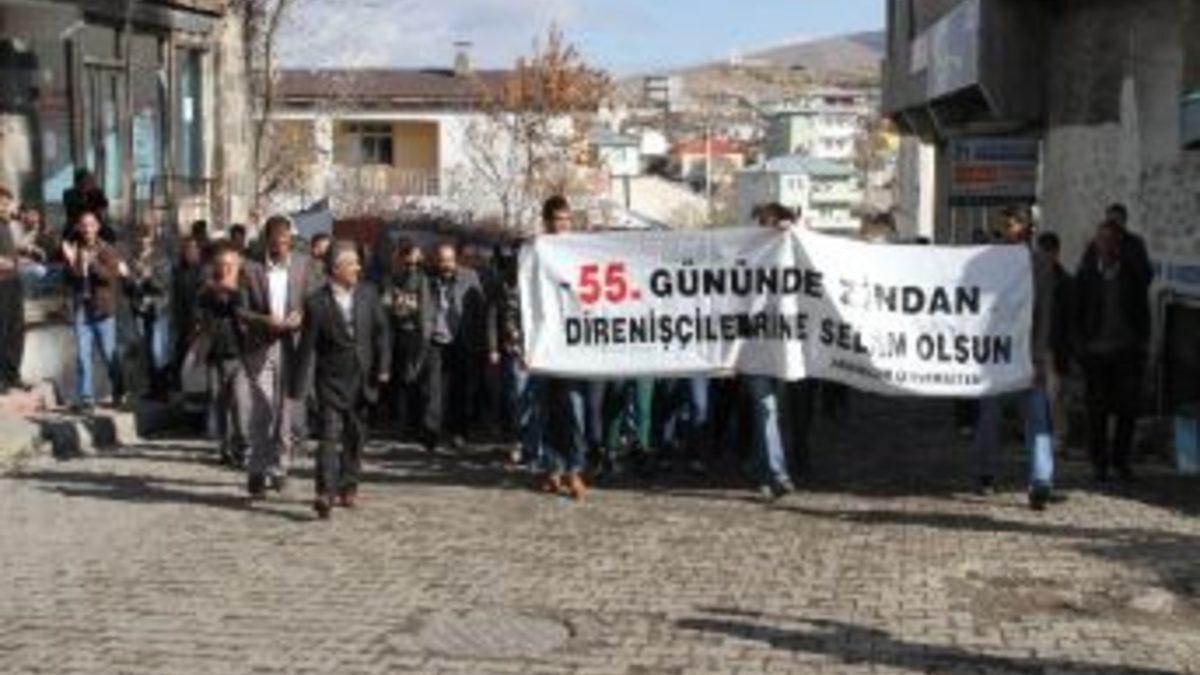 Ardahan’da, açlık grevlerine destek için bir grup öğrenci ve BDP’li grup tarafından basın açıklaması yapılmak...