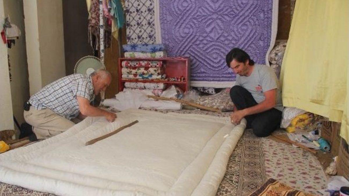 Antalya'nın Korkuteli ilçesinde 17 yıldır baba mesleğini devam ettiren yorgancı Özgür Sabancı, yorgancılığın artık yok olmaya başlayan meslekler arasında yer aldığını belirtti.Babası İsmail Sabancı'nın ilçede 35 yıl boyunca yorgancılık yaptığını anlatan Özgür Sabancı, "Baba mesleğini 17 yıldır ben yapıyorum. Bugün yorgancılık yok olmaya yüz tutan meslekler arasında. Artık çırak ve kalfa sıkıntısı çekiyoruz. Ben baba mesleğimi ayakta tutmak için çabalıyorum" diye konuştu.Geçmiş yıllarda genç kızların çeyizinde mutlaka ipek kumaşlardan yapılan yorganlar bulunduğunu hatırlatan Özgür Sabancı, günümüzde ipek yorganların tarihe karıştığını söyledi. Sabancı, "Mesleğe gönül verenler bir bir dükkanlarını kapatıyor. Hazır dikilen, yıkanabilir elyaflardan yapılan yorganlar el işçiliğinin yok olmasına sebep oldu. Biz baba mesleğini ayakta tutmak için çalışıyoruz. Allaha şükür yine de işimiz iyi" dedi.