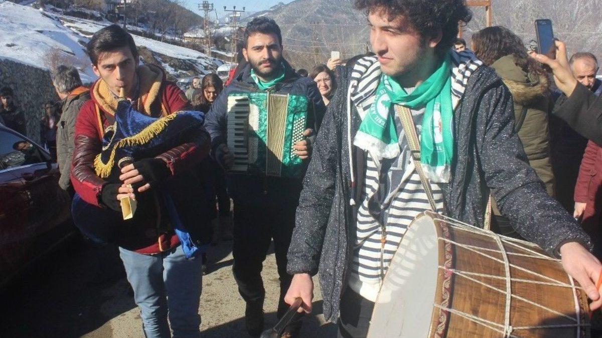 Artvin’de maden karşıtları, geçtiğimiz yıl yaşanan olayların birinci yıl dönümünde ‘Cerattepe için horona dur’ diyerek olayların başladığı yerde büyük bir horon halkası oluşturdu.Artvin’in Kafkasör Yaylası Cerattepe bölgesinde maden çıkaracak şirketinin 16 Şubat 2016 tarihinde, asker ve polis eşliğinde zırhlı araçlarla bölgeye gelişi Artvin halkının tepkisine neden olmuş, halkı sokağa dökmüştü. Atmaca mevkisinde yolu trafiğe kapatan vatandaşlara asker ve polis müdahale etmiş ve olaylar yaşanmıştı. Olayların üzerinden bir yıl geçmesinin ardından oluşturulan Artvin Gençlik Platformu mensubu yüzlerce kişi, olayların başladığı Atmaca mevkisine çıkarak basın açıklaması yapıp horon halkası oluşturdu. Artvin Valiliği tarafından, 6. kez geçtiğimiz hafta ilan edilen eylem yasağından dolayı çok sayıda çevik kuvvet ekibi hazır bekledi.Üzerinde, “Yürüyelim ki ayaklarını denk alsınlar, anlasınlar ki burada Artvinliler var” ifadelerinin yer aldığı pankartın ardında toplanan grup basın açıklaması yaptı. Platform adına konuşan Aydan Yerlikaya tarafından yapılan basın açıklamasında, “Bugün Artvin’in 25 yıllık mücadelesinin dönüm noktası olan 16 Şubat 2016 günü ve sonrasında yaşadıklarımızın üzerinden bir yıl geçti ve şirket saldırılarına devam etmektedir. Canımız pahasına sahip çıktık Cerattepe’ye. Etten kemikten ibaret, sahipsiz ve korumasız bir güç ne kadar direnebildiyse, bizler ancak o kadar direndik. Direndik ve kazandık. Ne iş bahaneniz ne ülke ekonomisine katkısı ne de yer altı zenginliklerinin yer üstüne çıkarılması gibi süslü söylemlerin hiçbirine kanmıyoruz” şeklinde konuştu.Basın açıklaması esnasında ‘Direne direne kazanacağız’ ve ‘Bu daha başlangıç, mücadeleye devam’ şeklinde slogan atıldı.Artvin Gençlik Platformuna destek vermek için programa katılan, Yeşil Artvin Dernek Başkanı Nur Neşe Karahan, “Bir yıldır Artvin’de tedirginlik var, hukuksal süreç bitmeden şirket yukarıda ön hazırlık çalışmaları yapıyor. Bugün de gençlerimizin burada bir horon etkinliği oldu. Bizlerde onlara destek için buradayız bundan sonrada mücadelemiz artarak devam edecek” dedi.Basın açıklamasını tamamlayan grup tulum, akordeon ve davul eşliğinde büyük bir halka oluşturarak doyasıya horon oynadı.