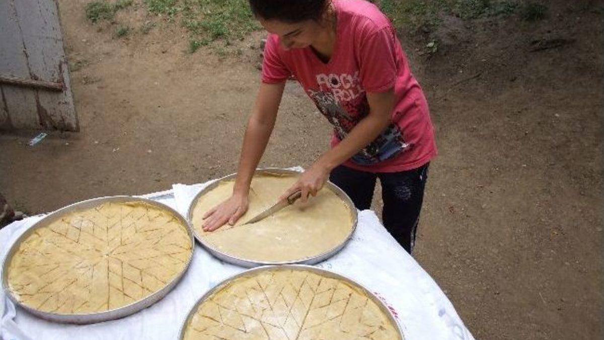 Artvin’in Şavşat ilçesinde Ramazan Bayramı hazırlığı yapan kadınlar bayram baklavası açtılar.Ramazan ayının sonuna yaklaşılması ile Ramazan Bayramı için yapılan hazırlıklar hızlandırıldı. Şavşat ilçesinde bir araya gelerek, her yıl olduğu gibi bu yıl da bayram hazırlığı yapan kadınlar, koro eşliğinde türkü söyleyerek, bayram baklavası açtılar. ‘Baklava Korusu’ adını verdiklerini grupta Şavşatlı kadınlardan bazıları türkülerden etkilenerek ağladı.Organik baklavanın nasıl yapıldığı anlatan kadınlar, “Bizim açmış olduğumuz baklavaların bütün malzemeleri organiktir. Unu kendi tarlamızdan, yumurtası kendi tavuklarımızdan cevizi kendi bahçemizden, sütü yoğurdu kendi ineklerimizden elde etmiş olduğumuz ürünlerden yapıyoruz. Baklava açılma işlemi bittikten sonra pişmesi bile organiktir. Odun ateşinde köy sobalarında pişirmekteyiz. Onun içinde diğer baklavalarda daha lezzetli ve sağlıklıdır” dediler.