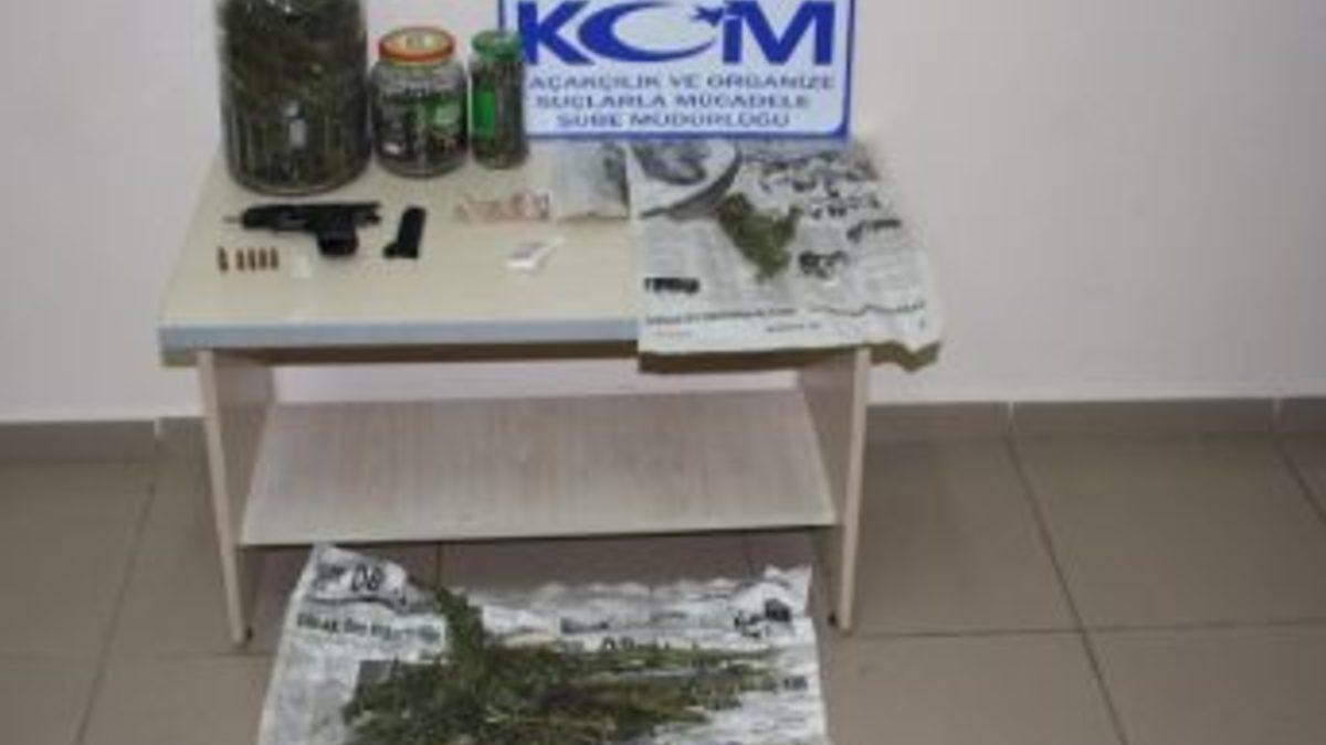 Konuyla ilgili yapılan yazılı açıklamada, Kaçakçılık ve Organize Suçlarla Mücadele Şube Müdürlüğü ekipleri tarafından İl merkezinde uyuşturucu madde ticareti suçu kapsamında yapılan operasyonda 1 kilo 164 gram esrar maddesi, 16 adet extacy uyuşturucu hap, 1 adet üzerinde seri numarası bulunmayan tabanca ele geçirildiği ifade edildi.