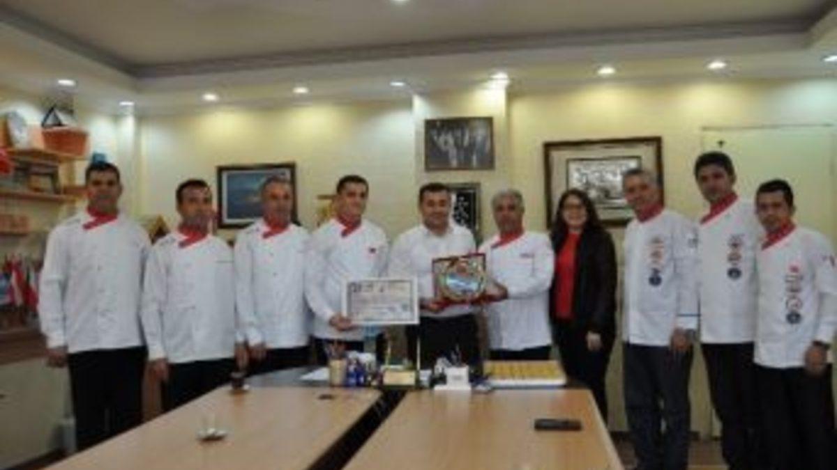 23.Uluslararası Gıda ve İçecek İhtisas Fuarına katılan Akdeniz Profesyonel Aşçılar Birliği Yönetimi, Alanya Belediye Başkanı Adem Murat Yücel’i ziyaret ederek desteklerinden dolayı teşekkür etti.Antalya’da düzenlenen 23.Uluslararası Gıda ve İçecek İhtisas Fuarı’nda, ‘Bakliyatlı Ürünlerle 7 Bölge Lezzet Günleri’ konseptinde yapılan yemek yarışmasında ödül alan Akdeniz Profesyonel Aşçılar Birliği, Alanya Belediye Başkanı Adem Murat Yücel’e teşekkür ziyaretinde bulundu.Alanya’nın bir derneği olarak bu fuarda ve yarışmada kendilerini destekleyen tek kurumun Alanya Belediyesi olduğunu belirten Dernek Başkanı Baki Budak, “Bakliyatlı Ürünlerle 7 Bölge Lezzet Günleri” nde kazanılan katılım sertifikası ve plaketi Belediye Başkanına sundu.Belediye Başkanı Adem Murat Yücel, Alanya için çalışan tüm dernek ve kurumların yanında olduklarını belirterek, Alanyalı aşçıları başarılarından dolayı tebrik etti.