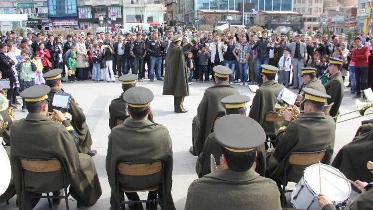 Erzurum’da 9. Kolordu Komutanlığı Bando Takımı, açık hava konserinde İbrahim Erkal gibi ünlü sanatçıların parçalarını seslendirdi. Konserde 4 yaşındaki Mehmet Akif Özünal askeri bando takımının şefliğini yaptı.Yakutiye Kent Meydanı’nda 9. Kolordu Komutanlığı Bando Takımı tarafından vatandaşlara açık hava konseri düzenlendi. Askeri bando takımının çaldığı parçalarla neşelenen vatandaşlar keyifli zaman geçirdi. Konserin son bölümünde askeri bando takımı tarafından ünlü sanatçı İbrahim Erkal’a ait ‘Hadi Gel Erzurum’a Gel’ oyun havasının çalınmasıyla vatandaşlar yerlerinde oynayarak çalınan birbirinden güzel parçalar dinleyiciler tarafından beğeniyle karşılandı.Konser’de 4 yaşındaki Büşra Güven ile Mehmet Akif Özünal, askeri bando takımına şeflik yaparak bando takımını yönetti. Minikler baton adı verilen orkestra çubuğunu ellerine alarak askeri bando takımına komutlar verip müzisyenleri yönetti. Keyifli zaman geçiren minikler izleyiciler tarafından tam not aldı.