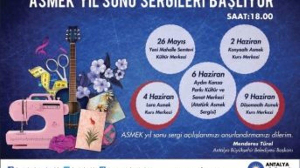 Antalya Büyükşehir Belediyesi ASMEK kurslarında eğitim gören kursiyerler, 26 Mayıs tarihinde Yenimahalle Kültür Merkezi’nde sergi açacak.Antalya Büyükşehir Belediyesi Kültür ve Sosyal İşler Dairesi Başkanlığı’na bağlı Antalya Sanat ve Mesleki Eğitim Kursları’nın (ASMEK) yıl sonu sergileri başlıyor. Kursiyerler, 2013-2014 döneminde ürettikleri eserleri bir dizi sergi ile beğeniye sunacak. ASMEK sergileri,26 Mayıs’ta Yenimahalle Kültür Merkezi’nde Karşıyaka, Kepez, Varsak, Çaybaşı ve Altınova kurs merkezlerinin ortak sergisiyle başlayacak.Kursiyerlerin diğer sergileri ise 2 Haziran’da Konyaaltı ASMEK Kurs Merkezi’nde, 4 Haziran’da Lara Kurs Merkezi’nde, 9 Haziran’da Döşemealtı ASMEK Kurs Merkezi’nde gerçekleştirilecek. Atatürk Kurs Merkezi’nin sergisi ise 6 Haziran’da Aydın Kanza Parkı’nda beğeniye sunulacak.Kursiyerler, sergilerde çeyiz ürünleri, dekoratif ahşap süsleme, ebru, elde kurdele işi, rölyef-üç boyutlu şekillendirme, seramik biçimlendiricisi, takı tasarımı, kadın giysileri dikimi ve kösele çanta yapımı gibi çalışmalarını sergileyecek.