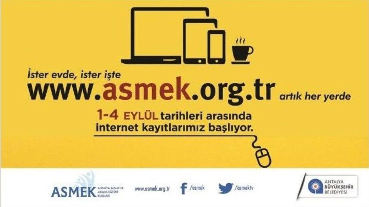 Türkiye’nin en büyük yaygın eğitim kurumlarından biri Antalya Sanat ve Meslek Eğitimi Kursları’nda (ASMEK) yeni dönem kayıtları başlıyor. 1-4 Eylül tarihlerinde internet üzerinden ön kayıt yaptıracak kursiyerler, yabancı dil kursları için 7-8 Eylül, bilgisayar kursları için 9-10 Eylül, meslek ve sanat kursları içinse 11-12 Eylül tarihlerinde ASMEK merkezlerine şahsen başvuruda bulunacak.Antalya Büyükşehir Belediyesi Kültür ve Sosyal İşler Dairesi Başkanlığı Yaygın Eğitim Şube Müdürlüğü’ne bağlı ASMEK’te, 2015-2016 yılı eğitim dönemi için kayıtlar başladı. Antalyalılar kurslar için 1-4 Eylül tarihlerinde www.asmek.org.tr adresinden ön kayıt yaptırabilecek. Ön kayıt yaptıran kursiyerler yabancı dil kursları için 7-8 Eylül, bilgisayar kursları için 9-10 Eylül, meslek ve sanat kursları içinse 11-12 Eylül tarihlerinde ASMEK merkezlerine şahsen başvuracak.Aksu, Altınova, Atatürk, Konuksever, Dokuma, Döşemealtı, Kepez, Lara, Uncalı, Varsak, Manavgat, Alanya, Akseki ve Elmalı Kurs Merkezleri’nden yapılacak olan kayıtlar için nüfus cüzdanı fotokopisi, 2 adet fotoğraf, A2 seviyesindeki yabancı dil kursları için A1 sertifikası ve 3D Max, AUTOCAD gibi üst düzey bilgisayar kursu kayıtları için bilgisayar sertifikası gerekiyor. Toplamda 145 branşta eğitim veren ASMEK’te dersler 10 Ekim’de başlayacak.