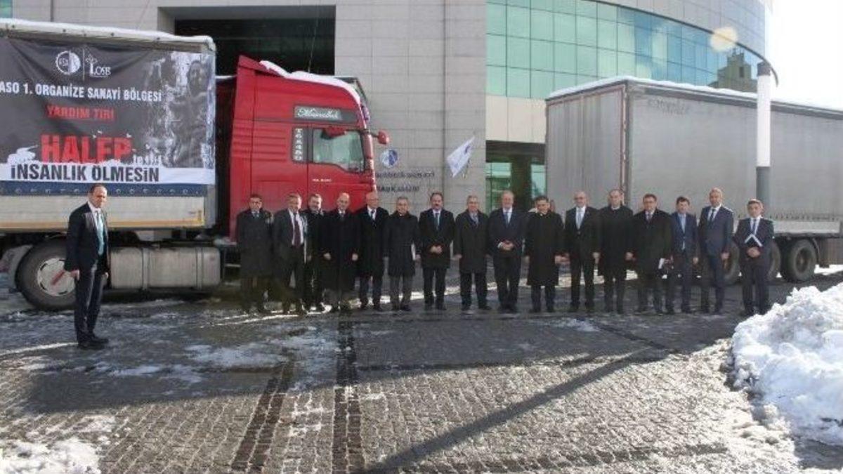 Ankara Sanayi Odası (ASO) 1. Organize Sanayi Bölgesi (OSB), "Halep’te insanlık ölmesin” kampanyasına destek oldu. ASO 1. OSB’de yer alan sanayicilerin desteğiyle temin edilen gıda ve insani yardım malzemeleriyle yüklü 2 tır, Ankara Valisi Ercan Topaca ile ASO Başkanı Nurettin Özdebir tarafından uğurlandı.Suriye’de yaşanan insanlık dramını yakından takip ettiklerini ve Halep halkının yanında olduklarını belirten ASO ve ASO 1. OSB Başkanı Nurettin Özdebir, Türkiye olarak bu coğrafyada ‘kimsesizlerin kimsesi’ olma bilincini misyon haline getirdiklerini dile getirdi. Yanı başımızda kan ve gözyaşının hakim olduğu bir insanlık dramı yaşandığına dikkat çeken Özdebir, “Terör örgütlerinin gözünü diktiği bu coğrafyada topraklar kan ve gözyaşıyla sulanıyor. Dünya tarihinin en büyük dramlarından birine sahne olan Halep şehrindeki sivil insanlara yardım için ASO 1. OSB bünyesindeki yardımsever sanayici dostlarımıza çağrıda bulunarak bu kanayan yaraya bir nebze olsun merhem olmak istedik. Tüm sanayicilerimiz sağ olsunlar duyarlılık göstererek kampanyaya katılım gösterdi. Bu zor kış günlerinde Halepli sivillerin kursağından geçecek sıcak bir lokmada emeği olan tüm sanayicilerimize teşekkür ediyorum" diye konuştu.Ankara Valisi Ercan Topaca, ASO 1. OSB’de yer alan sanayicilere Halep konusunda gösterdikleri duyarlılıktan dolayı teşekkür etti. Topaca, tırların uğurlanmasının ardından Bölge Müdürlüğünde ASO 1. OSB ile ilgili Özdebir’den bilgi aldı. Özdebir, Ankara’nın Türkiye’nin en önemli sanayi kentlerinden biri haline geldiğini söyledi.Vali Topaca ve ASO Başkanı Özdebir, daha sonra bölgede yer alan Bozankaya Otomotiv, Hidromek ve Küçükpazarlı Havacılık firmalarını ziyaret etti. Vali Topaca, fabrikalarda yaptığı incelemeler sırasında firma yetkililerinden yapılan çalışmalar hakkında bilgi aldı. Bölgede yer alan ASO Teknik Kolejinin sınıf, laboratuvar ve atölyelerini de gezen Topaca, teknik eğitime daha fazla önem verilmesi gerektiğini belirterek, mesleki eğitime yaptığı katkılar için ASO’ya teşekkür etti.