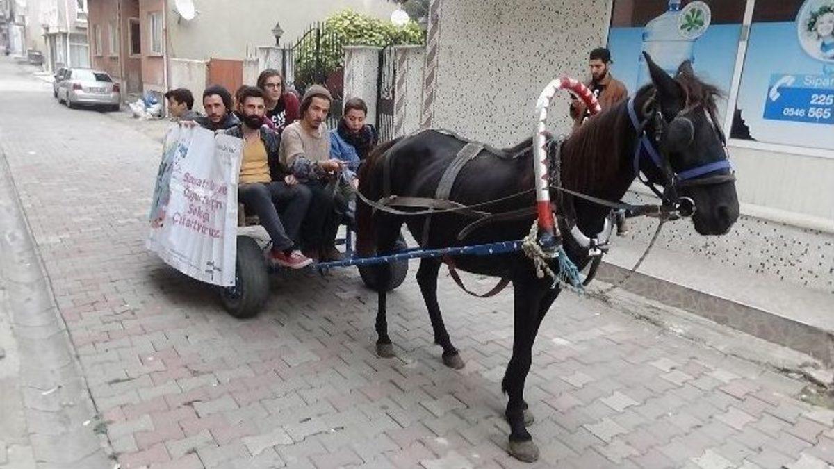 Edirne’de "Sokakta Sanat Var Derneği" üyeleri, İstanbul’da gerçekleşecek kültürel etkinlikleri için bir kurum tarafından ulaşım yardımı göremeyince tepkilerini at arabasıyla gösterdiler.Bir kuruma İstanbul’da gerçekleşecek etkinliklere katılmak için ulaşım başvurusu yapan gençlerin istekleri reddedilince, gençler çareyi at arabasına binerek İstanbul’a gitmekte buldu. Gençler, dernek binaları önünden hareket ederek İstanbul’a kadar at arabasıyla gideceklerini ifade ettiler.Sokakta Sanat Var Dernek Başkanı Türkü Neval Köse, yaptığı açıklamada, “Sanatın en kapsamlı ayağını Edirne’de biz yürütüyor olmamıza rağmen bazı kurumlar tarafından hiçbir şekilde destek verilmiyor. Eğer ulaşımımız sağlanmazsa biz de kendi imkanlarımızla gideriz İstanbul’a. Bu yüzden de at arabasıyla yola çıkıyoruz. Yarın İstanbul’da görüşmek üzere” dedi.