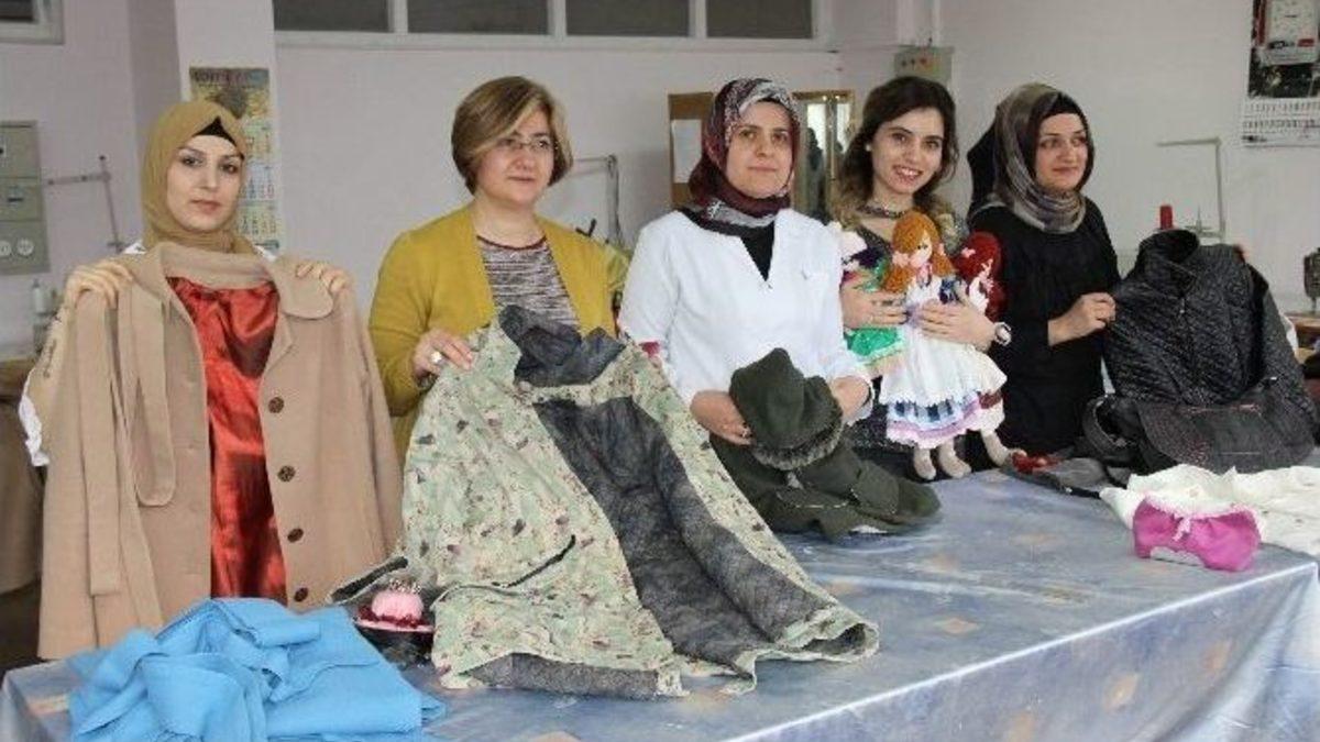 Yozgat’ta giyim kursuna katılan kadınlar, tekstil fabrikalarından temin ettikleri kumaş atıklarından ve evlerinde kullanmadıkları ürünlerden kendilerine özgü yeni giysiler elde ederek aile ekonomilerine katkı sağlıyor.Halide Edip Mesleki ve Teknik Anadolu Lisesi bünyesinde düzenlenen giyim kursunda eğitim gören kadınlar, çeşitli kıyafetler ve süs eşyaları üretiyor. Dikiş eğitimi alan kadınlar atık kumaşlardan elde ettikleri ürünlerle ekonomiye katkı sağlarken, ailelerinin ihtiyaçlarını da gideriyorlar.Atık kumaşlardan organik bebek elde ettiklerini dile getiren Halide Edip Mesleki ve Teknik Anadolu Lisesi Giyim Öğretmeni Ayşe Şimşek, “Bebeğimizi tamamıyla organik ve kumaş atıklarıyla elde ediyoruz. Çöpe atılan kazakları söküp saçlarını elde ediyoruz. Kumaşlarımız tamamıyla organik ve diktiğimiz kıyafetlerden artanları birleştirerek bebeklerimizi oluşturuyoruz. Hem çocuklar için güzel bir oyun aracı oluyor hem de hanımlarımız için de bir terapi oluyor” dedi.Kursiyerlerden Sevda Kızılay ise, “Aldığım kumaşla pantolon diktim, kalanıyla da eşime cepken dikiyorum. Ucuz maliyetli bir kumaş, artan kumaşları değerlendiriyorum. Kızıma da elbise yapıyorum. Kursa 3 yıldır devam ediyorum. Bayanlara da tavsiye ediyorum. Evde oturmaktansa buraya gelerek çok küçük maliyetlerle ürünler çıkarabilirler. Sipariş alıyoruz isterlerse ama daha çok evimize katkımız oluyor” diye konuştu.Kursiyer Zeliha Erkaya da, “Kursa bu sene başında katıldım. Yeni başlamama rağmen birçok ürün çıkardım. Kumaşlarımızı birkaç dükkan var oradan alıyoruz. Kumaşlar maliyet olarak bize çok hesaplı geliyor. Ailemize, eşimize, dostumuza da dikiyoruz ve aile ekonomisine katkımız oluyor. Kullanılmayan bir metre kalmış bir kumaşı alarak dikip ortaya bir ürün çıkarabiliyorsunuz. Bu zamana kadar kaban gömlek diktim” şeklinde konuştu.Okul Müdürü Ayşe Yaşar ise yaptığı açıklamada, “Kadınlarımız, öğretmenlerimizin verdiği bilgiler ve eğitimler doğrultusunda atık kumaşları gündelik kıyafetlere dönüştürüyorlar. Öğretmenlerimiz bir takım fabrikalara müracaatta bulunuyorlar. Fazla ürünleri ya da kullanmadıkları ürünleri okulumuza ücretsiz gönderiyorlar. Bunlar kumaş, düğme, ip, aksesuar oluyor. Bayanlarımız kumaşları kullanıyorlar. Kursiyerlerimiz hiç para harcamadan ürüne dönüştürüyorlar. Sipariş alırlarsa para da kazanıyorlar. Devletimizin kadınlarımıza yönelik pek çok teşviki var. Aldıkları belgeleri değerlendirmek isterlerse ticarete de atılabilirler” dedi.