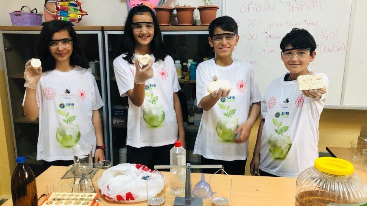 Sivas’ın Ulaş ilçesi Vali Lütfi Tuncel Ortaokulu öğrencileri atık gıda yağından sabun elde ettiler.
