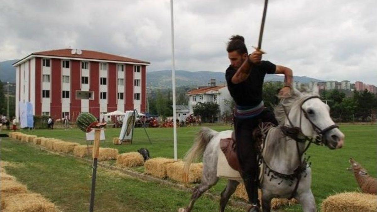 Tokat’ta “Danişment Gazi Atlı Oyunlar Festivali” son gününde atlı okçular kılıçla karpuz kesti.Tokat’ta ilk defa düzenlenen Atlı Oyunlar Festivali’ne Ankara, Erzurum, Erzincan, Sivas, İstanbul, Kayseri ile Tokat’tan 46 sporcu katıldı. İki gün süren yarışmada Osmanlı tarzı kıyafetleri ile hedeflere at üzerinde ok atan yarışmacıları vatandaşlar heyecanla takip etti. Festivalin son günü Uzunburunspor Tesisleri çim sahada yapılan gösteriler dikkat çekti. Gösteriler öncesinde protokol üyeleri hedefe ok attı. At üzerinde ok atarak hünerlerini sergileyen sporcular hedefleri 12’den vurdu. Hedeflere dikilen karpuzları at üzerinde dörtnala giderken kılıçla kesen okçular alkış topladı. Okçular ayrıca mızraklarla da gösteri yaptı. Okçuların gösterilerinin ardından yarışmada dereceye girenlere ödüllerini Tokat Valisi Cevdet Can, Garnizon Komutanı Tuğgeneral Hacı İlbaş, Tokat Belediye Başkanı Eyüp Eroğlu takdim etti.Festival kapsamında ayrıca Gençlik Hizmetleri ve Spor İl Müdürlüğü okçuları da gösteri yaptı. Okçuluk Antrenörü Davut Kaya’nın matrak oyunu da dikkat çekti.