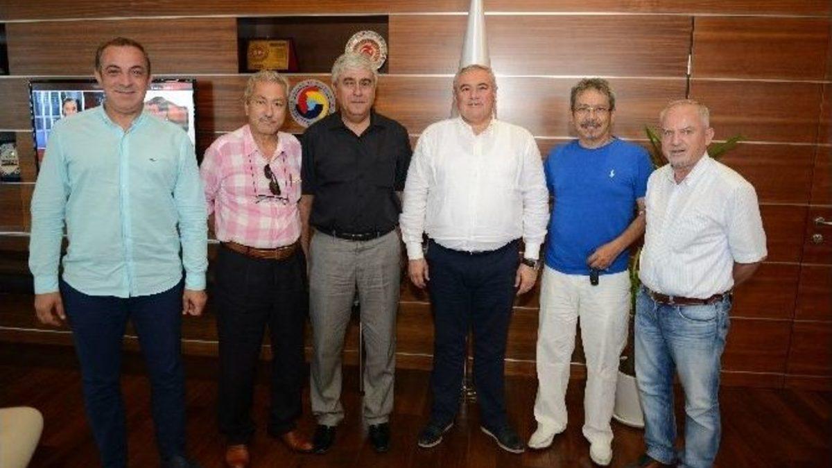 Türk Spor Yazarları Derneği(TSYD) Antalya Şubesi Başkanı Emin Demir ve Yönetim Kurulu Üyeleri Ahmet Geven,...