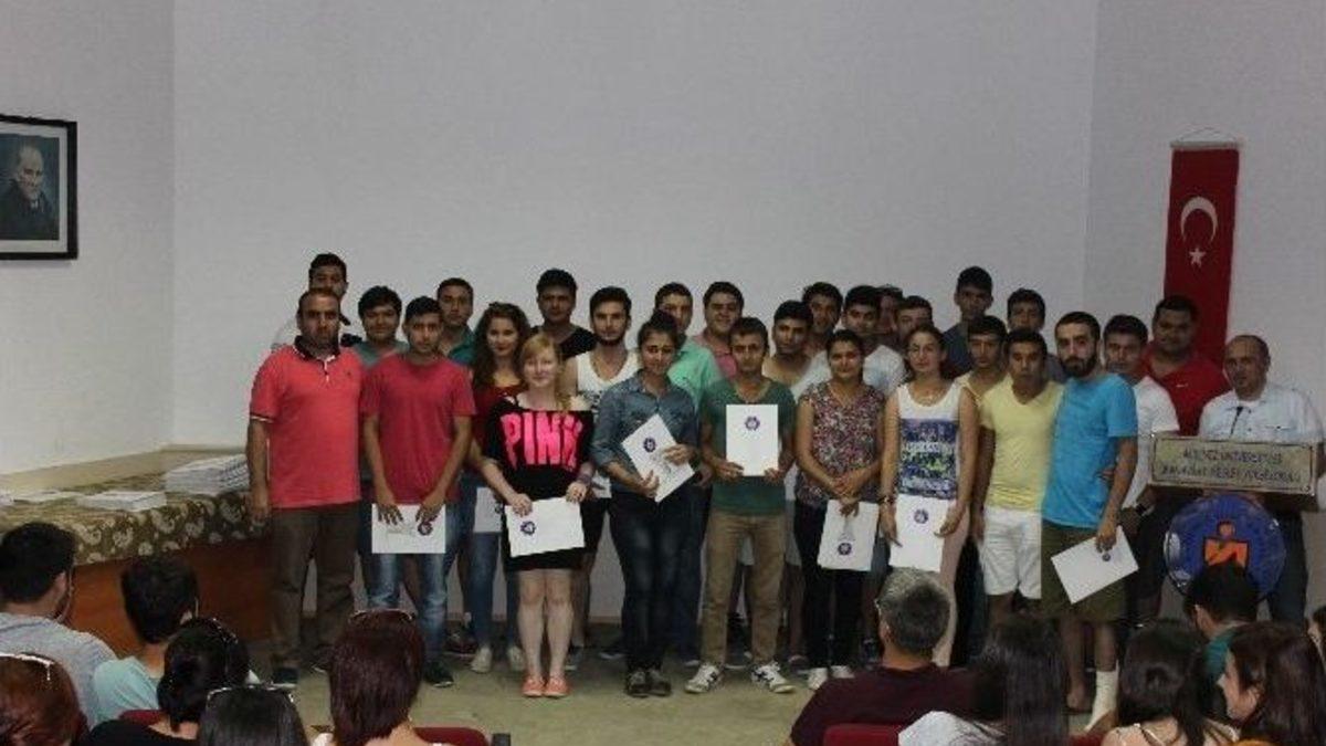 2014 2015 eğitim ve öğretim yılında Akdeniz Üniversitesi (AÜ) Manavgat Meslek Yüksekokulu tarafından düzenlenen sosyal, kültürel ve bilimsel etkinliklerde görev alan öğrencilere teşekkür belgesi verildi.Akdeniz Üniversitesi (AÜ) Manavgat Meslek Yüksekokulu tarafından 2014-2015 eğitim ve öğretim yılı boyunca düzenlenen Şiir ve Müzik Gecesi, Çanakkale Zaferi ve Şehitlerimizi Anma Günü Etkinliği, Geleneksel İstihdam Fuarı, I. Ulusal Turizm ve Mikrobiyal Gıda Güvenliği Kongresi, Susam Ürünleri Yarışması, Köy Okullarına Yardım Kampanyası ve çeşitli seminer, konferans ve panelde görev alan öğrencilere teşekkür belgesi verildi.MYO Müdürü Doç. Dr. Hacer Bakır Sert konuyla ilgili yaptığı açıklamada, "Sadece eğitim ve öğretimle yetinmeyen Manavgat Meslek Yüksekokulu ailesi bilimsel, kültürel, sanatsal ve sosyal faaliyetlere de büyük önem vermektedir. Düzenlenen bu etkinliklerin büyük bir kısmında öğrenciler aktif rol almaktadır. Düzenlenen etkinliklerde görev alan öğrencilerimizi canı gönülden kutluyorum. Ayrıca bu etkinliklerin düzenlenmesinde emeği geçen tüm akademik ve idari personelimize sonsuz teşekkür ediyorum" dedi.