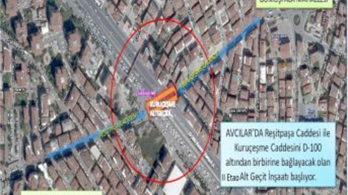İstanbul Büyükşehir Belediyesi'nden yapılan açıklamaya göre;Avcılar-Kuruçeşme alt geçit İnşaatı'nın 2. etap çalışmalarına önümüzdeki cumartesi günü başlanacak. Küçükçekmece -Avcılar istikametinde 10 gün sürecek olan 2. etap çalışması boyunca D-100 Karayolu'ndaki taşıt trafiği üç şerit olarak yan yola yönlendirilecek.
