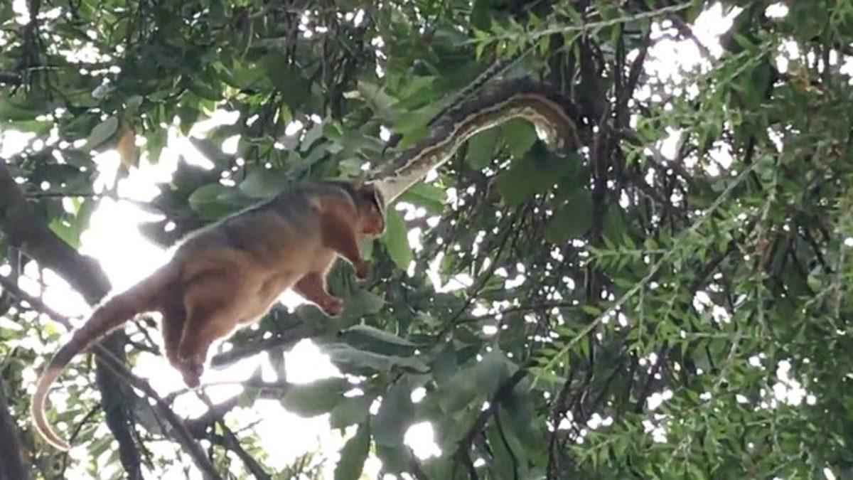 Sosyal medyada yayınlanan bir video nefes kesti. Avını havada yakalayan piton yılanı, ağaçta olduğu yerde 45 dakika içinde yedi. İşte o görüntü.