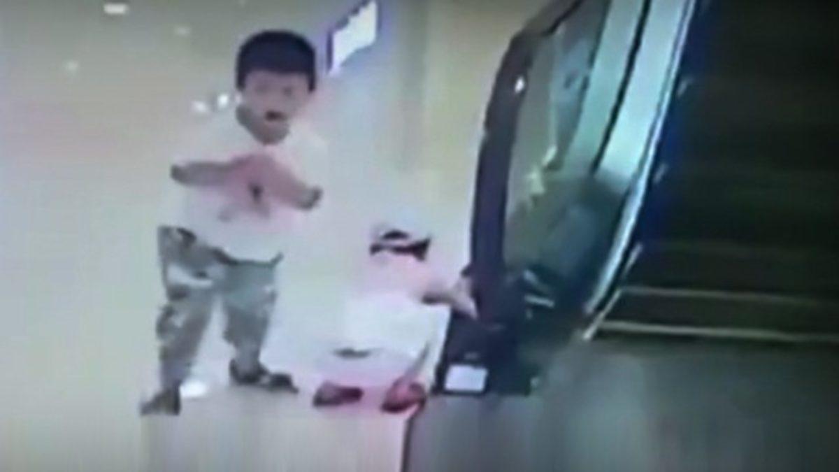 Çin'de bir AVM'de yaşanan korkunç olay güvenlik kameralarına kaydedildi. Yürüyen merdivenlerin bandıyla oyun oynayan 2 yaşındaki çocuk, elini banda kaptırınca olanlar oldu.