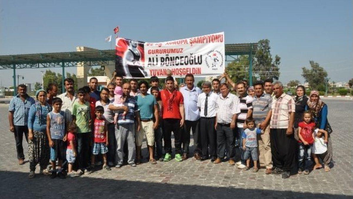 Avrupa Şampiyonu Ali Bönceoğlu memleketi Mersin'in Tarsus ilçesine gelişinde otogarda davul zurna eşliğinde karşılandı.