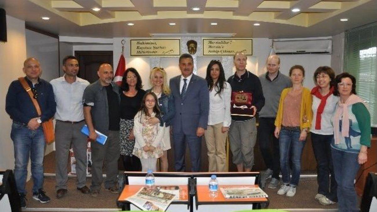 Mersin’in merkez Toroslar ilçesindeki Hüseyin Okan Merzeci Anadolu Lisesi tarafından hazırlanan bir Avrupa Birliği (AB) projesi kapsamında İsveç, Almanya ve İtalya’dan Mersin’e gelen öğretmen ve öğrenciler merkez ilçe Toroslar Belediye Başkanı Hamit Tuna’yı ziyaret ettiler.Ziyarette, Avrupalı konuklarına eğitim ve gençlik alanında yaptıkları çalışmaları anlatan Tuna, ülkeler arası hayata geçirilen bu projelerin, farklı ülkelerin kültürlerinin tanınmasına ve uluslararası diyalogun artmasına vesile olduğunu ifade etti. Belediye olarak gençliğe ve eğitime büyük önem verdiklerini belirten Tuna, öğrencilerin girişimcilik ve özgüven duygularını kazanmaları için birçok proje hayata geçirdikleri bilgisini verdi.Mersin’de AB projeleri gerçekleştirmeye hak kazanan kurum ve kuruluşlar arasında birinci sırada yer aldıklarını da kaydeden Tuna, “Bu kapsamda bölgenin ekonomik, sosyal ve kültürel yönden kalkınmasına katkıda bulunuyoruz” dedi.Ziyarette, Avrupalı konuklar Başkan Tuna’ya ülkelerine özgü bir hediye verirken, Tuna da konuklarına üzerinde Toroslar Belediyesi’nin logosunun bulunduğu çini işlemeli birer vazo hediye etti.