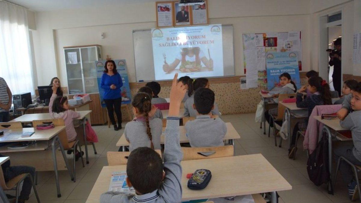 Aydın İl Gıda Tarım ve Hayvancılık Müdürlüğü tarafından gerçekleştirilen ilkokul öğrencilerine yönelik "Balık Yiyorum Sağlıklı Büyüyorum" konulu eğitimler hız kesmeden devam ediyor.Şimdilik İlkokul öğrencilerine yönelik gerçekleştirilen eğitimler ilerleyen süreçte eğitimin değişik kademesindeki öğrenciler içinde uygulanması planlanıyor. Balık yemenin faydaları, suları koruma, bazı balıkların tanıtımı ve balıkların asgari avlanabilir boy ölçülerini kapsayan eğitimler İl Müdürlüğündeki su ürünleri mühendisleri tarafından veriliyor.Aydın İl Gıda Tarım ve Hayvancılık Müdürü Fuat Fikret Aktaş eğitimlerle ilgili olarak,"Dünyada yıllık balık tüketimi yıllara göre değişmekle birlikte yüzde 16-18, bizde ise bu oran yüzde 6-7 civarında. Bu oranı artırmak ve çocuklarımızın daha sağlıklı beslenmesini sağlamak için bu tür bir eğitimi uygun gördük. Aydın merkezde başlayan bu eğitimleri ilerleyen süreçlerde ilçelerimizde de uygulamaya başlayacağız" dedi.Eğitim öncesinde öğrencilere İl Müdürlüğü tarafından hazırlanıp temin edilen, balık yemenin faydalarını anlatan balık temalı takvim, bloknot ve kalem gibi eğitim materyalleri hediye edildi. Bu dönem üç okulda gerçekleştirilen eğitimler okul idareleri ve öğrenciler tarafından ilgiyle karşılandı.