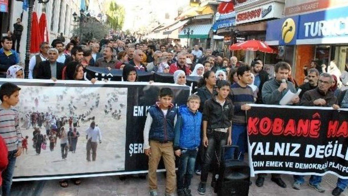 Aydın Emek ve Demokrasi Platformu üyesi bir grup, Kobani halkı için destek çağrısı yaptı.Aydın Emek ve Demokrasi Platformu üyesi bir grup, Adnan Menderes Bulvarı güzergahında gerçekleşen yürüyüşün ardından Sevgi Yolu’nda toplandı. Terör örgütü IŞİD’in Kobani’ye yönelik saldırılarını kınayan grup, destek çağrısında bulundu.Grup adına ortak basın açıklamasını okuyan Eğitim Sen Aydın Şube Başkanı Ali Gün, “Tam 48 gündür Kobani’ye insanlıktan nasibini almamış, sadece Kürt halkının değil, insanlığın düşmanı olan IŞİD çeteleri alçakça saldırıyor. Kobani’deki insanlık dışı çetelere karşı sergilenen direnişi bütün dünya halkları ve bütün insanlık izledi ve gördü. Bu nedenle 1 Kasım 2014’ü Dünya Kobani ile Dayanışma Günü ilan etti. Bugün dünyanın dört bir tarafında Kobani direnişe ses vermek için, onlarla dayanışma içerisinde olabilmek için alanlara ve meydanlara çıkan bütün dünyadaki demokratik insanlığı da selamlıyoruz. Bunun anlamı çok büyük ve çok değerlidir. O nedenle bütün dünya insanlığı Kobani’nin yanındadır” dedi.Grup, konuşmaların ardından dağılırken, polis ekipleri çevrede geniş güvenlik önlemi aldı.