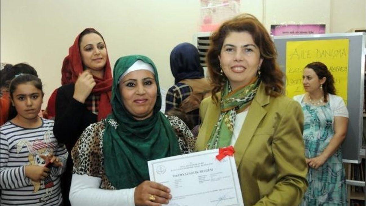 Vali Yardımcısı Karabiber ise kadınlara seslenerek, burada bir gönül hizmetinin verildiğini kaydetti ve “Eksik kaldığınız eğitimler burada verilerek sizlerin hayata tutunmanıza yardımcı oluyoruz. Özellikle Sayın Valimizin ve Sayın Hanımefendi’nin bütün ilgisi ve alakası sizler için. Sizlerin daha iyi yetişmesi ve çocuklarınıza daha iyi bakmanız için her türlü hizmet ve kurs düşünüldü. Sizlerin her türlü talebi bizler için değerli” ifadelerini kullandı.
