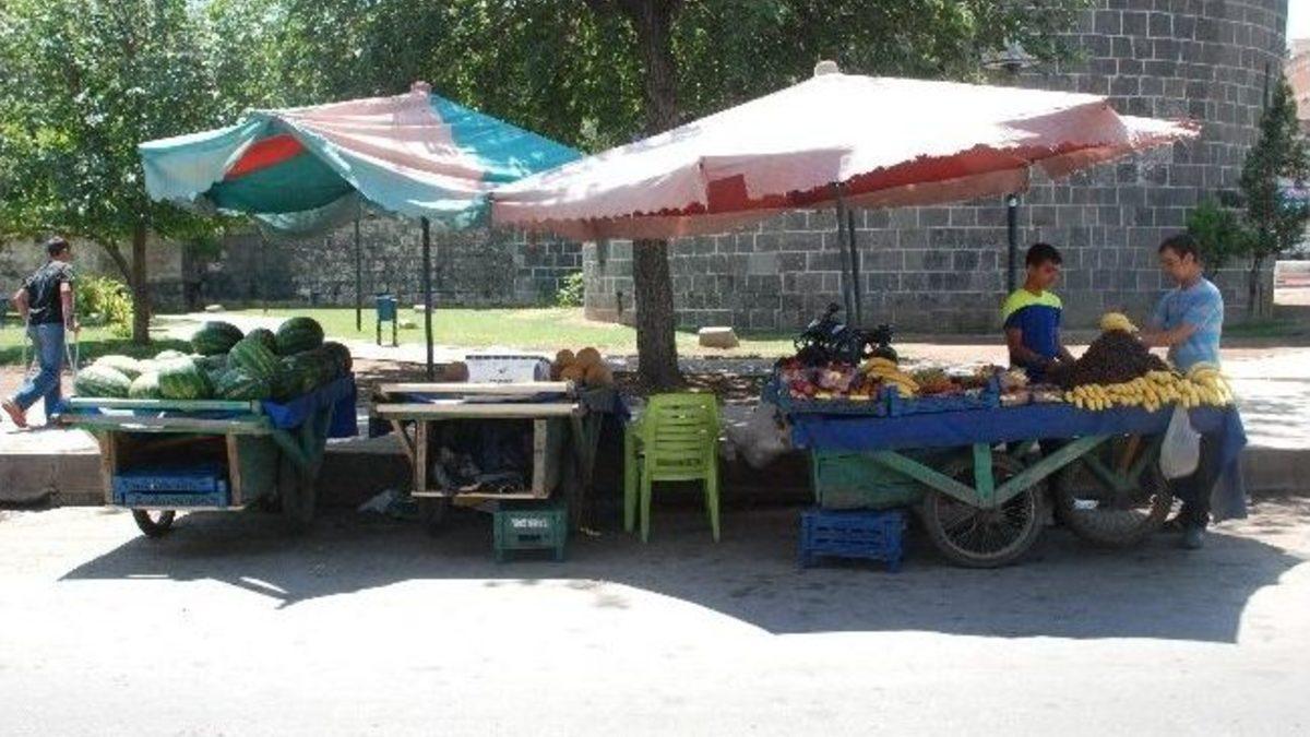 Diyarbakır'ın Sur ilçesi Dağkapı semti Hastane Caddesi‘nde baba mesleğini yapan 16 yaşındaki Hüseyin Cinaklı, hem harçlığını çıkarıyor, hem de ev ekonomisine katkı sunuyor.Uzun bir süredir tabla üzerinde meyve ve sebze sattığını belirten 16 yaşındaki Hüseyin Cinaklı, bu işin baba mesleği olduğunu söyledi. Cinaklı, "Babam 20 yıldır burada meyve satıyor. Biz de ağabeyimle birlikte babama yardımcı olup eve katkıda bulunuyoruz. Günde 25-30 lira kazanıyorum. Ağabeyim halden meyveleri alıp buraya getiriyor, ben de tablanın başında duruyorum. İlkokuldan beri çalışıyorum" dedi.Mevsimlere göre meyve satışlarının farklılık gösterdiğini söyleyen Cinaklı, özellikle yazın meyve satışlarının arttığını vurguladı. Son zamanlarda karpuz satışlarının artmaya başladığını belirten Cinaklı, karpuzun kilosunun 1 liraya düştüğünü, henüz Diyarbakır karpuzunun çıkmadığını söyledi.