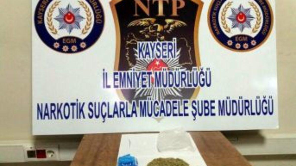 Kayseri’de kavga ihbarına giden polis ekiplerine baba, öz kızına ait olduğunu söylediği 20,45 gram sentetik kannabinoid maddesi teslim etti.Edinilen bilgiye göre polis ekipleri Nazımbey Mahallesi Yurttaş Sokak üzerine kavga ihbarına gitti. Melikgazi Ekipler Amirliği görevlilerine baba Ş.A. (47), öz kızı Z.A.’nın (25) uyuşturucu madde kullandığını ve kızına ait olduğunu söylediği naylon poşeti teslim etti. Poşeti inceleyen polis ekipleri içerisinde daralı ağırlığı 20,45 gram gelen sentetik kannabinoid (bonzai) olduğu değerlendirilen maddeyi teslim aldı. Daha sonra polis ekipleri tarafından Z.A.’nın yapılan üst aramasında da tek sigara içerisinde ağzı bükülmüş uyuşturucu madde ve kağıt mendil paketi içerisinde yarım kırık tablet şeklinde uyuşturucu maddelerden extacy olduğu değerlendirilen hap ele geçirildi. Olayın ardından şahıslardan Ş.A.’ya ’uyuşturucu madde bulundurmak ve kullanmak’ suçundan işlem yapıldığı öğrenilirken, Z.A. ise ’uyuşturucu madde ticareti yapmak’ suçundan işlem yapılarak gözaltına alındı.Olayla ilgili tahkikatın devam ettiği bildirildi.