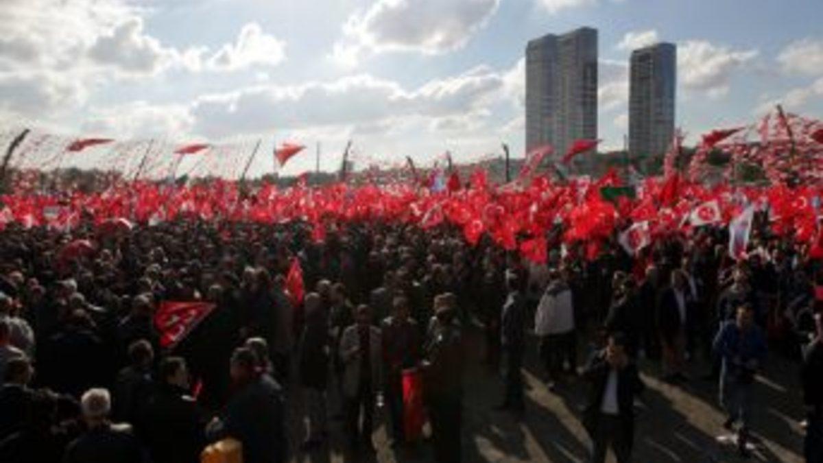 Milliyetçi Hareket Partisi (MHP) Genel Başkanı Devlet Bahçeli, demokrasinin tehdit altında olduğunu söyledi. Bahçeli, “Demokratikleşme hamleleri, PKK'nın aklanması, temize çıkarılması ve taleplerinin karşılanmasına göz göre göre seferber edilmiştir. Hiç kuşkunuz olmasın ki demokrasi tehdit altındadır.” dedi.Kazlıçeşme Meydanı'nda düzenlenen 'demokrasi mitingi'nde partililere seslenen Devlet Bahçeli, demokrasi üzerinden Başbakan Erdoğan’a yüklendi. Bahçeli, “Başbakan Erdoğan, demokrasiye duyduğu hazımsızlığın, hoşgörü ve uzlaşmaya gösterdiği tepkiselliği her fırsatta gün yüzüne çıkarmıştır. Yozlaştırılan, kasten yanlış yorumlanan demokrasi kardeşliğimizin dinamiti olarak seçilmiştir. Kutupların hızlandırıcısı ve teşvik edicisi olarak şifrelendirilmiştir. Üstelik bölünmenin kutup başı olarak devreye sokulmuştur. Demokratikleşme hamleleri, PKKnın aklanması, temize çıkarılması ve taleplerinin karşılanmasına göz göre göre seferber edilmiştir. Hiç kuşkunuz olmasın ki demokrasi tehdit altındadır. Demokrasiyi pakete sıkıştıran, demokrasiyi şüpheli paketlerin içerine yerleştiren Başbakan Erdoğan, eğer şartlar müsait olursa darağacına da çıkartmaktan bölücü hainlerden oluşan idam mandasının önüne koymaktan da kaçınmayacaktır.” ifadelerini kullandı.