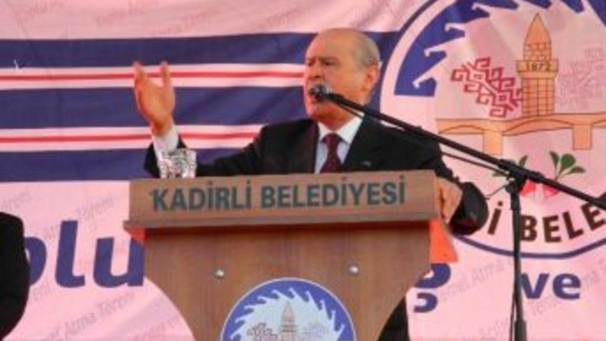 Milliyetçi Hareket Partisi (MHP) Genel Başkanı Devlet Bahçeli, toplu açılış törenine katılmak üzere geldiği Osmaniye’nin Kadirli ilçesinde, 'yolsuzluk ve rüşvet' iddialarıyla ilgili soruşturma üzerinden hükümete yüklendi.MHP Genel Başkanı Dr. Devlet Bahçeli, Kadirli Belediyesi yeni hizmet binasının açılış töreni için geldiği Kadirli ilçesinde halka hitap etti. İstanbul Cumhuriyet Başsavcılığı tarafından yürütülen soruşturmaya değinen Devlet Bahçeli, "İçinden geçtiğimiz bugünkü zaman diliminde koltuğunu kaybetmemek için çırpınan, ihanetlerini örtmek için kıvranan, rezaletlerini gizlemek için çirkefleşen, bahaneler ürettikçe batan bir hükümetle yüz yüzeyiz. İktidar, Türkiye'yi yorgun düşürmüştür, Türkiye'yi çatışma ve cepheleşme sürecine kilitlemiştir. Türkiyemiz tarihinin en talihsiz yıllarını yaşamaktadır. Tutarsız, ilkesiz, ahlaksız ve milliyetsiz kadrolar milletimizin önünü tıkamaktadır. Yıllardan beri küresel güçler şiddet ve vahşet senaryoları yazmış, hükümet kapı kapı gezerek kuryelik ve postacılık yapmıştır. Aziz milletimiz neticeleri çok ağır olacak bir kuşatmaya alınmıştır. Hükümetin iç ve dış politikasının referans kaynakları yabancı başkentlere göre kurulmuş ve kurgulanmıştır. Başbakan Erdoğan'ın çizdiği pembe tablolardan ise ortada iz ve eser yoktur. Daha da beteri ve kötüsü, yolsuzluğun, iktidarı kanser hücresi gibi sarmış olmasıdır. Başbakan Erdoğan, PKK ile müzakere yapıp bölünmenin direklerini dikmekle meşgulken yanında ve yöresindekiler devleti soyup soğana çevirmekle uğraşmıştır. AKP iktidarı yolsuzluk olup çıkmıştır, gayri meşru kazanç kapısı haline gelmiştir. Yeri gelince kul hakkından, haktan ve hukuktan bahsedenler heybelerini haramla doldurmuştur. Türkiye, 17 Aralık'tan beri çok ciddi yolsuzluk iddialarıyla çalkalanmaktadır. Öyle isnat ve suçlamalar vardır ki bunların birisi bile doğru ise hükümetin yerinde durması mümkün değildir. Görünen o dur ki yolsuzluk dalgası AKP hükümetini şaşkına çevirmiş, gaflet anında yakalamıştır” diye konuştu."GEÇİŞTİRİLECEK OLAY DEĞİLDİR"Operasyonunda adı geçen bakanlarla ilgili de konuşan Bahçeli, “Ortaya çıkan, basına yansıyan bilgi, belge ve bulgular, evlerde adeta banka kurar gibi kasalarca para biriktiren yüzler, AKP hükümetinin eseri ve asla altından kalkamayacağı vebalidir. Rüşvetçi bakanlarla ilgili ortalıkta dolaşan şaiyalar da hazmedilecek ve geçiştirilecek olay değildir” dedi.Yolsuzluk operasyonlarıyla ilgili konuşmasını sürdüren Bahçeli, “Hükümet yolsuzluğun dibini boylamış, potansiyel suçlular dolmuş, taşmış, Başbakan ise hala korkuluk taşlamaktadır. Yolsuzluk tasması hükümetin boynuna geçmiş, Başbakan ise hala çetelerden, sermaye gruplarından, medyadan ve karanlık güçlerden bahsetmektedir. Türk milletinin el emeği göz nuru alın teri, hükümetin yolsuzluk şantiyesinde hiç edilmektedir. Başbakan ise hala 'Türkiye’ye istikamet çizenler, çirkin yollara girenler, kirli ittifaklar var' diyerek milletimizi kandırmaktadır” şeklinde konuştu.“POLİS MÜDÜRLERİNİN GÖREVDEN ALINMASI SUÇLULUĞUN VERMİŞ OLDUĞU POLİS HALİDİR”İstanbul Cumhuriyet Başsavcılığı tarafından yürütülen soruşturma kapsamında İstanbul Emniyet Müdürlüğü'nde görevli bazı polis müdürlerinin görevden alınmasını da değerlendiren Devlet Bahçeli şöyle devam etti:“Buradan tüm tarafları ikaz ediyorum. Süren rüşvet ve yolsuzluk operasyonunu hiç kimse engellemeye kalkmamalıdır. Başbakan Erdoğan ve hükümetinin başta İstanbul Emniyetindeki polis müdürlerini görevden alması, hatta soruşturma açması tam olarak suçluluğun vermiş olduğu panik halidir. Hele hele soruşturmayı yürüten savcılarla ilgili herhangi bir tasarruf direkt olarak Başbakan ve bakanların suçlamalarından kaçmak ve kurtulmak arayışı olarak yorumlanacaktır. Artık takke düşmüş yolsuzluğun sevk zinciri belirmiştir. Yolsuzluk mahzeninin kapısı açılmış, pis kokular her tarafa yayılmıştır. Bu soruşturma sonuna kadar sürdürülmeli, ucu kime değerse değsin söz konusu hukuki süreç sağlıklı, düzgün şekilde ilerletilmelidir.”