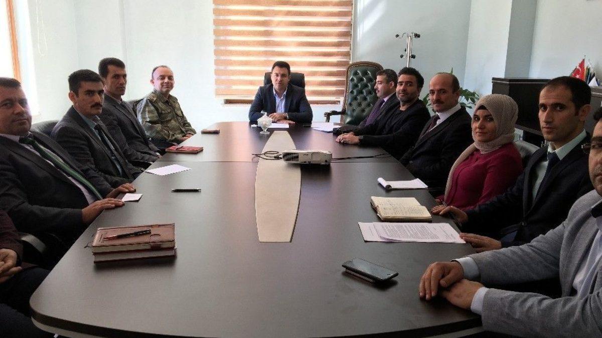 Van’ın Bahçesaray Kaymakamı Mehmet Özcan, ilçedeki kamu kurum müdürleri ile toplantı yaptı.Bahçesaray Kaymakamı Mehmet Özcan başkanlığında kaymakamlık binasında kamu kurum müdürleri ile toplantı yapıldı. Toplantıda ilçenin genel durumu ve kamu kurum ve kuruluşlarının sorun ve çözüm önerileri görüşüldü. İlçeye yeni atanan Kaymakam Özcan, kurum müdürlerinden yaptıkları ve yapacakları işler hakkında bilgi aldı.
