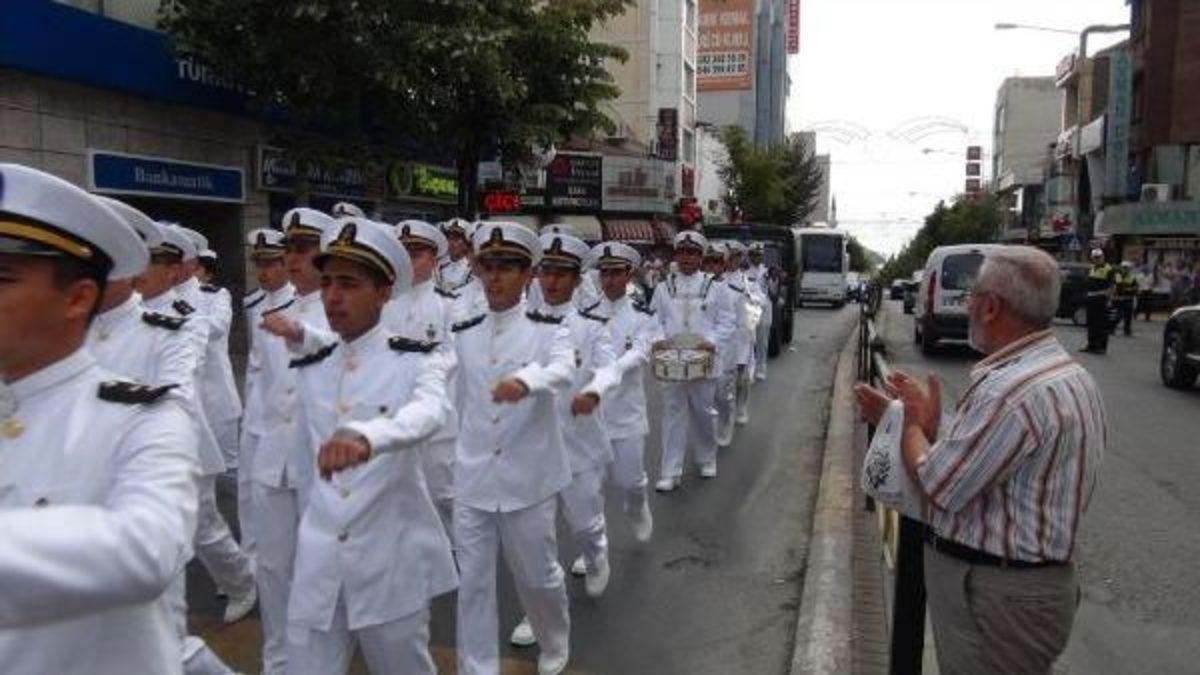 Ardından Valilik bahçesindeki Atatürk Anıtı’na çelenk bırakan denizciler, bando eşliğinde Hükümet Caddesi üzerinde yürüyüp 'Vatan sana canım feda', 'Ne Mutlu Türk’üm diyene', 'Şehitler ölmez, vatan bölünmez' sloganları attı. Denizcileri, çarşı esnafı ve vatandaşlar, coşkuyla alkışladı.