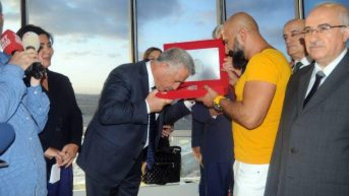 İSTANBUL (İHA) – Ulaştırma, Denizcilik ve Haberleşme Bakanı Ahmet Arslan, 15 Temmuz’da darbecilerin işgal ettiği Atatürk Havalimanı Hava Trafik Kontrol Kulesi’ni kalkışmanın birinci yılında ziyaret etti.Ulaştırma, Denizcilik ve Haberleşme Bakanı Ahmet Arslan, 15 Temmuz darbe girişimi sırasında darbeci askerlerin Atatürk Havalimanı’na gelerek işgal ettikleri Hava Trafik Kontrol Kulesi’ni kalkışmanın birinci yılında ziyaret etti. Buradaki personelle sohbet eden Arslan, 15 Temmuz gecesi üstün bir başarı örneği göstererek Cumhurbaşkanı Recep Tayyip Erdoğan’ın uçağının sorunsuz bir şekilde havalimanına iniş yapmasına büyük katkı sağladıklarını dile getirdi. Ziyaret sırasında basın mensuplarına açıklamalarda bulunan Bakan Arslan, “O gün, o akşam Türkiye’nin genelinde olağanüstü bir durum vardı. Elbette ki kuledeki arkadaşlar hep hava trafik sıkışıklığına, hep dakik hareket etmeye alışıklardı. Ama o gün çok farklı bir gündü. Türkiye’nin her yerinde herkes teyakkuzdaydı. Bizde ulaştırma ve haberleşme ile ilgili görevimizi ifa etmek adına ve özellikle yayıncılık konusunda insanımızın doğru bilgilendirilmesi adına teyakkuz halindeydik ve topyekün görevimizin başındaydık. O akşam buradaki mülki idare amiri ve havalimanı başmüdürümüz ve gerekse buradaki çalışma arkadaşlarımızla sürekli istişare halindeydik. Erişimin ve ulaşımın aksamaması, insanımızın doğru bilgilendirilmesi ve çok daha önemlisi liderimiz Sayın Cumhurbaşkanımızı sağ salim milletimizle, milletiyle, kahraman milletiyle ulaştırmak adına teyakkuz halindeydik. Arkadaşlara çok teşekkür ediyoruz” dedi.Bakan Arslan, 15 Temmuz gecesi Atatürk Havalimanı girişinde darbecilere karşı tankın önüne yatarak simge haline gelen Metin Doğan’a da Türk bayrağı ile Kur’an-ı Kerim hediye etti. Bakan Arslan, hediyeyi takdim ettiği sırada Türk bayrağını öptü.