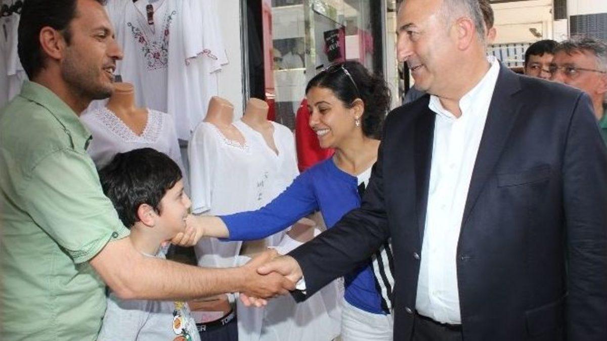 Dışişleri Bakanı Mevlüt Çavuşoğlu, AK Parti Antalya milletvekili adayları ve partisinin il ve ilçe yöneticileriyle birlikte Kemer’de esnaf ziyaretlerinde bulundu. Esnaflar Bakan’dan kırmızı otobüs ve TOKİ evleri istedi.Beraberinde AK Parti Antalya İl Başkanı Rıza Sümer, Antalya milletvekili adayları Murtaza Tamyürek, Nevin Korkmaz Zor ile birlikte geldiği Kemer’de AK Parti ilçe teşkilatı binası önünde partililer tarafından karşılanan Çavuşoğlu, daha sonra Lise Caddesi’nden itibaren esnafları ziyaret etti. Çavuşoğlu ve beraberindeki heyetin ziyaretlerine AK Parti Kemer İlçe Başkanı Ferruh Derin ve ilçe yönetim kurulu üyeleri, partili belediye meclis üyeleri de katıldı.Esnafların genel olarak turizm sezonundan endişelerini dile getirdikleri Bakan Çavuşoğlu’nun ziyaretleri sırasında bazı esnaflar, Antalya Büyükşehir Belediyesi tarafından Kemer’e kırmızı otobüs seferleri konulmasını ve TOKİ konutları yapılmasını istedi. Kırmızı otobüslerin Kemer’e geleceğini söyleyen Çavuşoğlu, TOKİ konutları konusunda, "Nispeten daha ihtiyaç sahibi bölgelere öncelik verdik ama Kemer’de de TOKİ konutları yapılacak" diye konuştu.