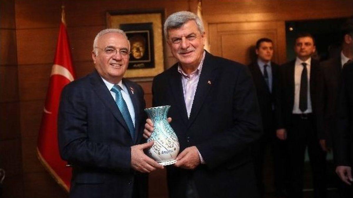 Kocaeli Büyükşehir Belediye Başkanı İbrahim Karaosmanoğlu, Ekonomi Bakanı Mustafa Elitaş’ı konuk etti.Ekonomi Bakanı Mustafa Elitaş, Kocaeli Büyükşehir Belediyesi’ni ziyaret ederek, yatırım ve projeler hakkında bilgi aldı. Ziyarette Kocaeli Büyükşehir Belediye Başkanı İbrahim Karaosmanoğlu, AK Parti Kocaeli İl Başkanı Şemsettin Ceyhan, Kocaeli Büyükşehir Belediye Başkan Vekili Zekeriya Özak, Kocaeli Büyükşehir Belediyesi Genel Sekreteri Doç. Dr. Tahir Büyükakın hazır bulundu.Ziyarette konuşan Bakan Elitaş, “Kocaeli’de hızlı büyüyen hızlı sanayileşen bir kentin sorunlarını bu şekilde azaltmak bir başarı örneğidir. Takdir etmek gerekir. 1999 Depreminin ardından bunu gerçekleştirmekte çok önemlidir. Yuvacık Barajı 4 Milyar TL’lik büyük meblağlı bu antlaşmanın dünya ticaret tarihinde bir başka örneğini bulamazsınız. Buna rağmen Kocaeli’de büyük işler başarıldığını görüyoruz. Kocaeli, Belediyecilikte Türkiye’ye örnek oldu. Kocaeli’nin geçmişini çok iyi hatırlıyoruz. Şimdilerde kentiniz mamur durumda. Huzurlu bir ortam ve sizleri tebrik ediyoruz. Sizlerle gurur duyuyoruz. Buradan bir kez daha Büyükşehir Belediye Başkanımızı huzurlu bir ortamı oluşturması bizleri gururlandırıyor. Doğumundan ölümüne kadar belediyeler insanımızın hayatında. Suyunda, yolunda, mezarlığında, düğünde ve cenazesinde belediyeler var, bunun da en güzel örneği Kocaeli’dir” dedi.Ekonomi Bakanı Elitaş’ın ardından konuşan Başkan Karaosmanoğlu, “Bakanımız bugün buraya gelerek bizleri şereflendirdi. Gebze OSB’lerde bir aradaydık ve önemli açılışlarla toplantılara katıldık. 2004’te Büyükşehir olunca bütün kenti kucakladık. Deprem geçiren kentimizin büyük problemleri vardı. Geçtiğimiz 12 yılda çevre konusunda büyük aşama kaydettik ve problemleri en aza indirdik. Köylere kadar yol ve su götürdük. Yüzde 99’luk bir oranla atık sularımızı arıtıyoruz. Çevreyi çok iyi bir şekilde iyileştirdik. Sanayimizden gelen kirliliğinde önüne geçtik. Bu konuda her kesimle çalışıyoruz. Kokuşan bir kentten, bugün sahillerinde yüzülebilen spor yapabilen ve daha yaşanabilir kent haline geldik” ifadelerini kullandı.