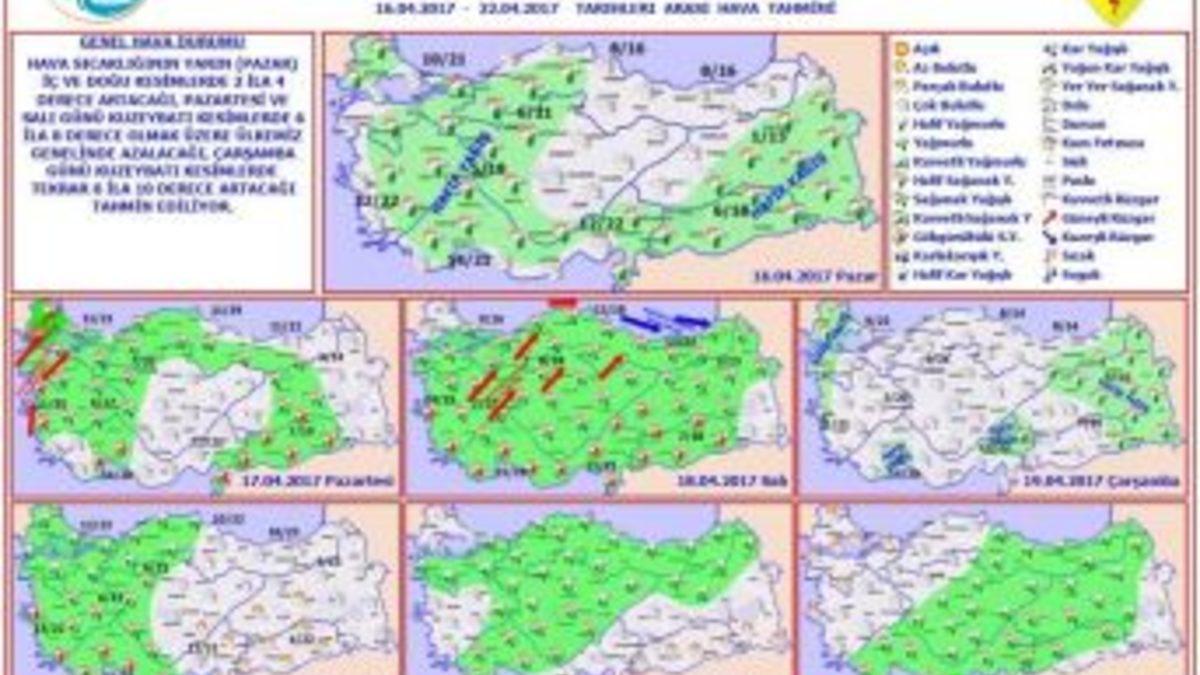 Orman ve Su İşleri Bakanı Veysel Eroğlu, yarın yapılacak olan Cumhurbaşkanlığı hükümet sistemi halk oylamasında Türkiye genelinin parçalı ve çok bulutlu olacağını duyurdu.Bakan Eroğlu, referandum günü Trakya, İç Ege, Akdeniz’in iç kesimleri, İç Anadolu’nun güney ve batısı, Batı Karadeniz’in iç kesimleri, Doğu Anadolu’nun doğusu, Güneydoğu Anadolu ile Balıkesir, Bursa, Kocaeli, Sakarya, Bilecik, Antalya, Hatay, Elazığ ve Bingöl çevrelerinin hafif olmak üzere aralıklı sağanak ve yer yer gök gürültülü sağanak yağışlı geçeceğinin tahmin edildiğini belirtti. Bakan Veysel Eroğlu, pazar günü yapılacak olan referandumun ülkemizin geleceği için güzelliklere vesile olmasını da diledi.Bakanlıktan yapılan açıklamada üç büyük ilimizin beklenilen hava durumu tahmini de yayımlandı:İstanbul parçalı çok bulutlu geçecek ve maksimum sıcaklık 21 derece olacak. İzmir parçalı çok bulutlu, maksimum sıcaklık 22 derece. Ankara ise sabah saatlerinde az bulutlu öğle saatlerinde parçalı çok bulutlu lokal 13 -19 saatleri arası hafif sağanak yağışlı geçecek. Maksimum sıcaklık 21 derece olacak.