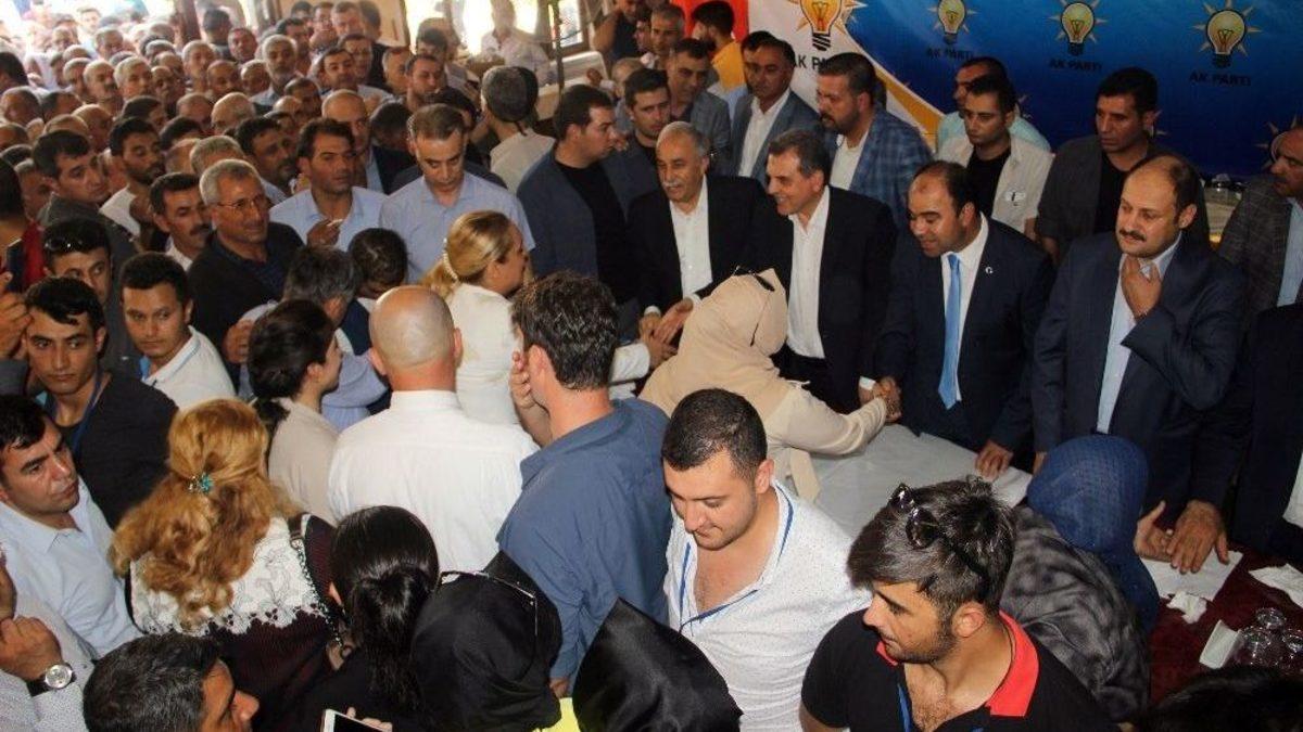 Gıda, Tarım ve Hayvancılık Bakanı Ahmet Eşref Fakıbaba, Şanlıurfa’da AK Parti il teşkilatının bayramlaşma programına katıldı.Kurban Bayramını memleketi Şanlıurfa’da geçiren Gıda, Tarım ve Hayvancılık Bakanı Ahmet Eşref Fakıbaba, AK Parti il başkanlığı tarafından bir düğün salonunda düzenlenen bayramlaşma programına katıldı. Milletvekilleri İbrahim Halil Yıldız, Halil Özcan, Kasım Gülpınar, Mahmut Kaçar ile belediye başkanlarının da hazır bulunduğu bayramlaşma programında Fakıbaba, uzun kuyruk oluşturan partililerle 2 saat boyunca tokalaştı. Binlerce kişinin katıldığı bayramlaşma programına görevliler de izdiham yaşanmaması için anonslarla uyarıda bulundu.Vatandaşlar, bütün bayramların huzur içerisinde geçmesini diledi.