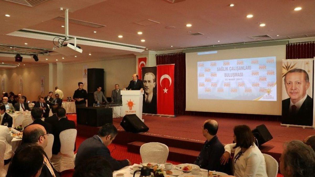 Çalışma ve Sosyal Güvenlik Bakanı Mehmet Müezzinoğlu, Büyükçekmece’de sağlıkçılarla buluştu. Bakan Müezzinoğlu 16 Nisan referandumu ile ilgili, "Diyoruz ki artık ipin ucu milletin elinde olsun. İpin ucunun bilmem kimin elinde olduğu demokrasi olmaz" dedi.Çalışma ve Sosyal Güvenlik Bakanı Mehmet Müezzinoğlu, Kumburgaz’da Büyükçekmece AK Parti İlçe Başkanlığının düzenlediği Sağlık Çalışanları Buluşması’na katıldı. Bir otelde düzenlenen buluşmaya AK Parti Büyükçekmece İlçe Başkanı İlker Gündüz, Memur-Sen İstanbul Şube Başkanı Durali Baki, bölgedeki hastanelerin başhekimleri ve çok sayıda sağlık çalışanları katıldı. Sağlık çalışanları ile kahvaltıda bir araya gelen Bakan Müzezzinoğlu burada bir konuşma yaptı."Milli irade inşallah 17 Nisan’da sonra otobana kavuşuyor"Konuşmasında yaklaşan referandumu değerlendiren Bakan Müezzinoğlu, "Milleti merkeze alan milletin hak ve hukukunu merkeze alan, milleti o muasır medeniyet seviyesinin üzerindeki hedefe, güçlü yürüyüşünü merkeze alan ve milli vicdani merkeze alan bir referandum arefesindeyiz. Diyoruz ki artık ipin ucu milletin elinde olsun. İpin ucunun bilmem kimin elinde olduğu demokrasi olmaz. Şu 14 yılda dünya ile yarışacak noktaya geldiysek milletle bütünleşen bir milli irade var ve milli irade ile oynanmak istenen oyunları başaramadıkları için ama ya başarsalardı. Ya da hiç bu sıkıntılar olmasaydı bugün Türkiye en az yüzde 30 daha iyi olmayacak mıydı? Kapatma davaları, 27 Nisanlar ve siz anayasa değişikliği yapamazsınız diye milletin ümüğünü sıkanlarla ikide bir uğraşmasaydık. Bugün otoban yolda gitmek farklı stabilize yolda gitmek farklı. Şimdi artık bundan sonra milli irade inşallah 17 Nisan’da sonra otobana kavuşuyor" şeklinde konuştu."Millet çıktı tank paletinin altına başını koydu"15 Temmuz darbe girişimiyle ilgili de konuşan Bakan Müezzinoğlu, Türkiye’nin gelişmesi sürecinde hep tuzakların kurulduğuna dikkat çekti. Müezzinoğlu, "Bu süreçlerde hep tuzaklar kurdular, hep çukurlar kazdılar, hep ihanet şebekeleri devreye girdi ama asla onlara prim vermedik. En sonunda da 15 Temmuz gecesini yine dışarıdan belirli maşaların, belirli güç odaklarının içerideki maşalarını kullanarak bu milletin iradesine karşı hain darbe girişimine kalkıştılar. Başaramadılar çünkü büyük bir millet var karşılarında, asil bir millet, mayası sağlam bir millet var karşılarında. Cesaretiyle, asaletiyle o hainlerin karşısında çıktı gerekirse o tankın paletinin altına başını koydu ve şöyle bir baktı ben senden cesurum dedi. Ben ihanetin karşısında dimdik duruyorum dedi" ifadelerini kullandı.Müezzinoğlu, CHP’yi eleştirdiAnayasa değişikliğindeki seçilme yaşının 18’e düşürülmesi maddesi üzerinden CHP’yi eleştiren Bakan Müezzinoğlu, "CHP gençlere diyor ki 18 yaşında çocuk millet vekili olur mu? Gençlerden korkuyorsun. 18-24 yaş arası 8 milyon genç var. Bu gençlerin arasından bu ülkenin Recep Tayyip Erdoğan’ların çıkmasını istiyoruz. Ama CHP şundan korkuyor olabilir. Bu gençlerin arasından daha başarılı bir Kılıçdaroğlu çıkabilir diye korkuyor olabilir" dedi.Bakan Müezzinoğlu’na konuşmasının ardından çiçek takdim edildi. Buluşmada "Liderlerin Gözünden Başkanlık Sistemi" isimli bir sinevizyon gösterimi yapıldı.